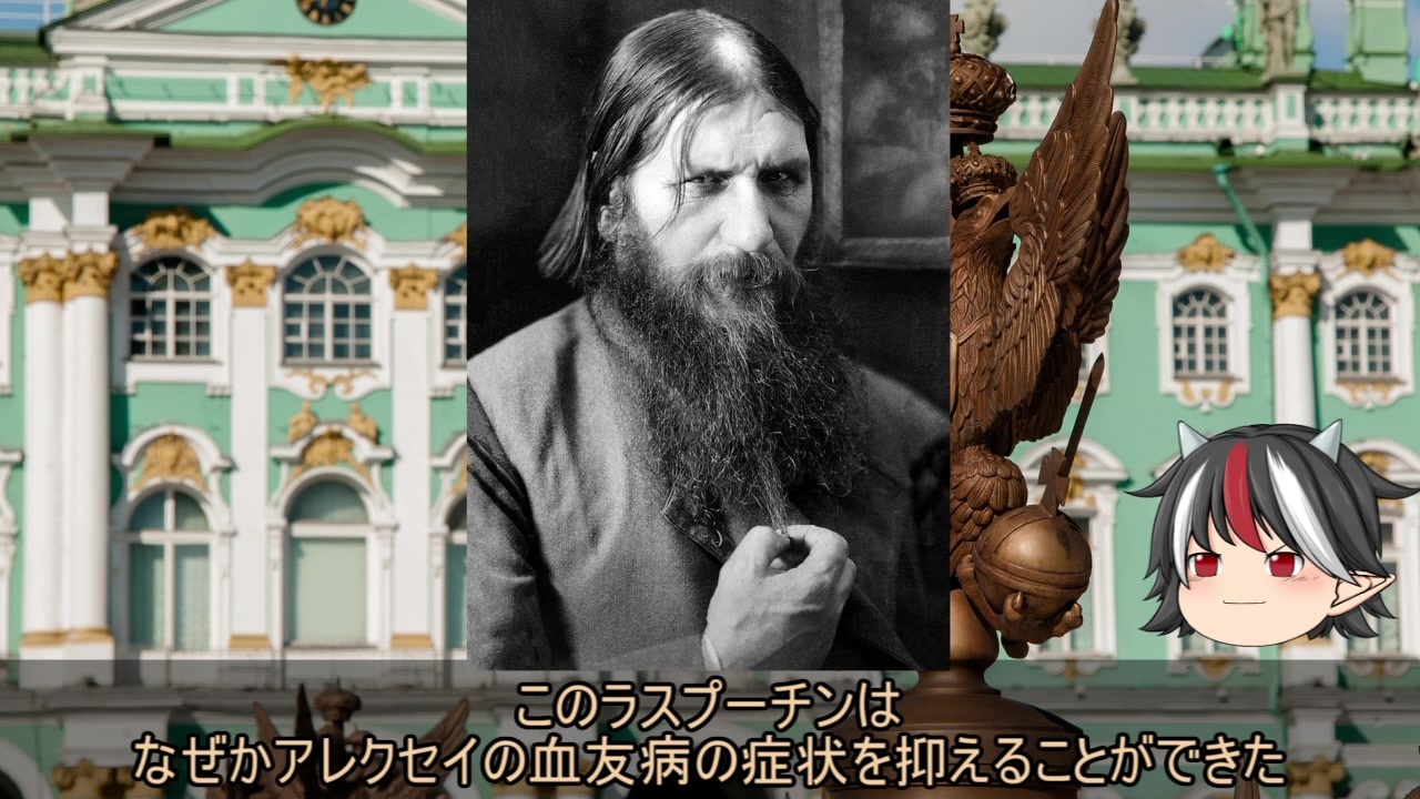 今回はストルイピンの改革からラスプーチンの専横までについて解説します。<br><br>【お知らせ】<br>コロナで図書館使えず資料が集められないので第18回(予定)をもって逆視点の世界史シリーズはお休みする予定です。<br><br>(補足事項)<br>1918年2月1日までロシアはユリウス暦を採用していたことからここで登場する日付はユリウス暦となっているのでいつも使っているグレゴリウス暦とはずれが生じています。<br>1900年3月1日までは12日、それ以降は13日プラスすればグレゴリウス暦に変換できます。 <br><br>次回:<a href="https://www.nicovideo.jp/watch/sm37685108" class="watch">sm37685108</a><br>前回:<a href="https://www.nicovideo.jp/watch/sm37284770" class="watch">sm37284770</a><br>マイリスト:<a href="https://www.nicovideo.jp/mylist/66079510" target="_blank" rel="noopener">mylist/66079510</a><br><br>ご意見・ご感想・ご要望があればぜひコメントしてください。<br>内容の都合上かなり端折ってますがご了承ください。<br><br>ついったー<br><a href="https://twitter.com/youz26400114" target="_blank" rel="noopener nofollow">https://twitter.com/youz26400114</a>
