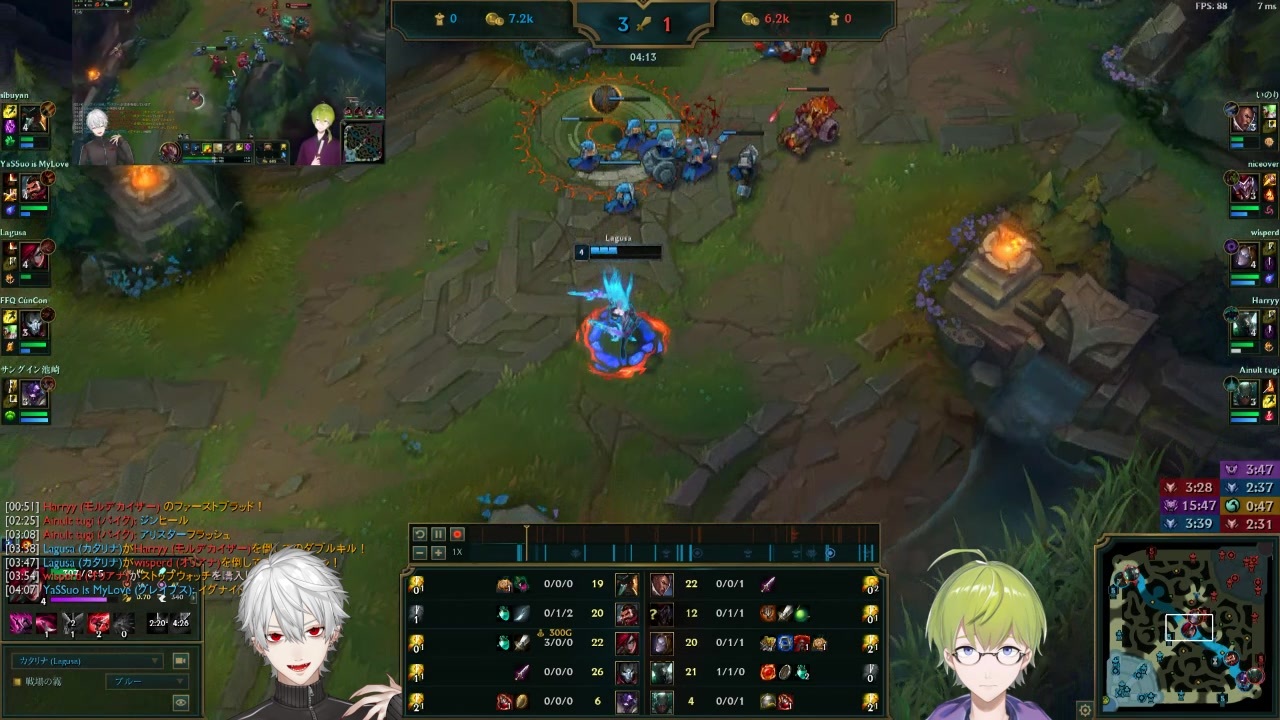 葛葉くん視点で音声あるのが見たくて初めて動画編集ソフトを触りました。<br>自分用ですが凄過ぎて声出たので・・・因みにこの試合での葛葉くんのスコアは26/6/0でした。<br><br>OPGGのリプレイに音声をくっつけただけなのですが、問題があれば削除します。<br>※戦場の霧は視点側のみONにしてます。<br><br>【元動画】 該当試合:4:31:08~<br>【LoLランク】日課の朝LoL!シルバー2【にじさんじ/渋谷ハジメ】<br><a href="https://youtu.be/7hzFS8Pjum0" target="_blank" rel="noopener nofollow">https://youtu.be/7hzFS8Pjum0</a><br><br>【ライバーさんのチャンネル】<br>葛葉くん<br><a href="https://www.youtube.com/channel/UCSFCh5NL4qXrAy9u-u2lX3g" target="_blank" rel="noopener nofollow">https://www.youtube.com/channel/UCSFCh5NL4qXrAy9u-u2lX3g</a><br>渋谷ハジメニキ<br><a href="https://www.youtube.com/channel/UCeK9HFcRZoTrvqcUCtccMoQ" target="_blank" rel="noopener nofollow">https://www.youtube.com/channel/UCeK9HFcRZoTrvqcUCtccMoQ</a>