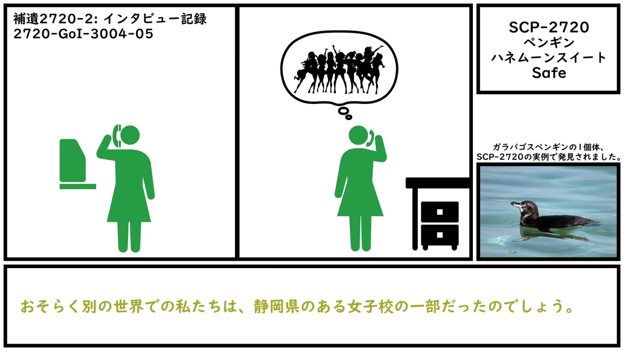 おそらく別の世界での私たちは、静岡県のある女子校の一部だったのでしょう。<br><br>本家記事 <a href="http://www.scp-wiki.net/scp-2720" target="_blank" rel="noopener nofollow">http://www.scp-wiki.net/scp-2720</a><br>翻訳記事 <a href="http://scp-jp.wikidot.com/scp-2720" target="_blank" rel="noopener nofollow">http://scp-jp.wikidot.com/scp-2720</a><br><span style="color: rgba(0, 0, 0, 0.87); font-size: 15px;">作者 </span><span style="color: #333333; font-size: 14px;">MrWrong</span><br><span style="color: rgba(0, 0, 0, 0.87); font-size: 15px;">SCP財団 <a href="http://scp-jp.wikidot.com" target="_blank" rel="noopener nofollow">http://scp-jp.wikidot.com</a></span><br><span style="color: #000000; font-size: 14px;">過去の動画はこちら </span><span style="color: #006699; font-size: 14px;"><a href="https://www.nicovideo.jp/mylist/67620202" target="_blank" rel="noopener">mylist/67620202</a></span><br><span style="color: rgba(0, 0, 0, 0.87); font-size: 15px;">CC-BY-SA 3.0</span>