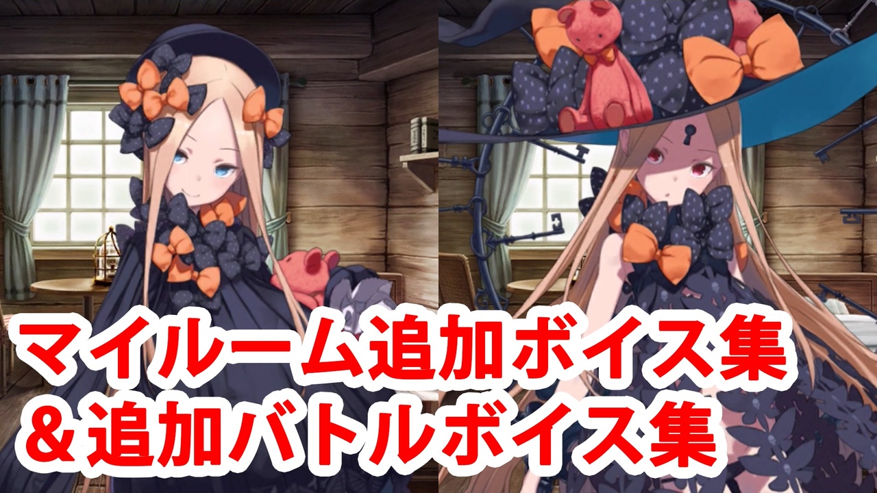 <span style="color: rgba(0, 0, 0, 0.87); font-size: 15px;">アビゲイル・ウィリアムズ〔夏〕の実装と同時に追加された<br>アビゲイル・ウィリアムズ(CV:大和田仁美)のマイルームボイスとバトルボイスのまとめです。<br><br>バトルボイスのスキル3とスキル4は昨年追加されましたが、個別投稿していなかったので合わせて収録しています。</span><br><br>YouTube版はこちら<br><a href="https://www.youtube.com/watch?v=iNjOFGbQV8s" target="_blank" rel="noopener nofollow">https://www.youtube.com/watch?v=iNjOFGbQV8s</a><br><br><span style="color: #000000; font-size: 14px;">投稿済ボイス集→</span><span style="color: #006699; font-size: 14px;"><a href="https://www.nicovideo.jp/mylist/57873980" target="_blank" rel="noopener">mylist/57873980</a></span><span style="color: #000000; font-size: 14px;">、</span><span style="color: #006699; font-size: 14px;"><a href="https://www.nicovideo.jp/mylist/68037946" target="_blank" rel="noopener">mylist/68037946</a></span><br>