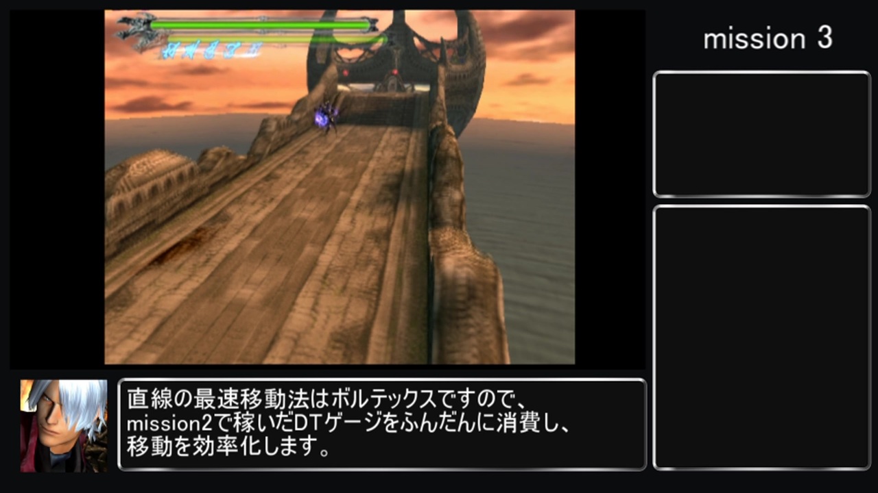 mission1~mission6まで。<br>まだTASらしいところは無いかも知れません、(汗)<br>____________________________________<br>下記のルールでDevil May Cry (初代)のスピードランを行います。<br><br>ルール<br>0.本記録は参考記録となります。<br> → 初代のタイム加算はロードも含むので、<br> エミュレータの使用によるロード時間の短縮がタイムの短縮に直結するため。<br>1.使用キャラは "フル成長済みダンテ" とする。<br>2.難易度は最高難易度の"Dante Must Die!"<br>3.ノーダメージでクリア<br> → 一部のmissionでのスリップダメージは除く<br>4.スピード重視のため、ムービーはカット。<br> → ロードだけでなく、ムービー等もタイムに加算されるため。<br><br>無編集版:<br><a href="https://www.youtube.com/watch?v=dPtjl7ac-KY&feature=youtu.be" target="_blank" rel="noopener nofollow">https://www.youtube.com/watch?v=dPtjl7ac-KY&feature=youtu.be</a><br><br>Part2 <a href="https://www.nicovideo.jp/watch/sm37429529" class="watch">sm37429529</a><br>マイリスト <a href="https://www.nicovideo.jp/mylist/67814470" target="_blank" rel="noopener">mylist/67814470</a><br>____________________________________<br>作成した動画紹介(露骨な宣伝。)<br>【TAS】Devil May Cry New Game 100% (DMD) <a href="https://www.nicovideo.jp/mylist/67814470" target="_blank" rel="noopener">mylist/67814470</a><br><br>【TAS】Devil May Cry 2 まとめ <a href="https://www.nicovideo.jp/mylist/55382175" target="_blank" rel="noopener">mylist/55382175</a><br><br>【TAS】Devil May Cry 3 New Game 100% (DMD) <a href="https://www.nicovideo.jp/mylist/67814452" target="_blank" rel="noopener">mylist/67814452</a><br><br>【TAS】Devil May Cry 4(PC) DMD <a href="https://www.nicovideo.jp/mylist/73066075" target="_blank" rel="noopener">mylist/73066075</a>