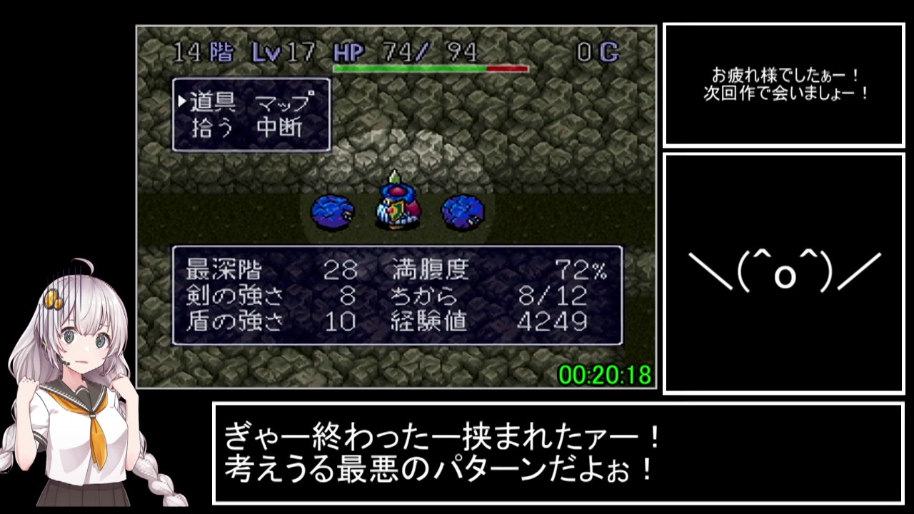 初投稿です。<br><br><br>以前『ゆっくり実況』にて幸せの箱RTAを投稿しました→<<a href="https://www.nicovideo.jp/watch/sm36215532" class="watch">sm36215532</a>><br><br>久しぶりに自分の動画を観てたんですが、我ながらうまく出来てるなぁと思いました(自画自賛)<br>当時はまだ動画編集を始めて2ヶ月ぐらいだったので結構大変だった記憶があります。<br><br><br>あれから半年が経過しました。そこで思っていた事があります。<br>このRTAを誰か『VOICEROID実況』で投稿してくれないかなー?と。<br>うーむ、まだ誰も投稿していないのかー。<br><br><br><br><span style="color: #ff0000; font-size: 24px;"><strong>じゃあ自分で作るしかないな!</strong></span><br><br><br><br>ちょっと不思議のダンジョンRTA→<<a href="https://www.nicovideo.jp/watch/sm37363375" class="watch">sm37363375</a>><br><br><br>計測開始:町から出た瞬間<br>計測終了:1階の階段で『上がる』を選んだ瞬間<br><br><br />RTApart1集 <a href="https://www.nicovideo.jp/mylist/66965194" target="_blank" rel="noopener">mylist/66965194</a><br>通常プレイpart1集 <a href="https://www.nicovideo.jp/mylist/67545233" target="_blank" rel="noopener">mylist/67545233</a><br>単発動画 <a href="https://www.nicovideo.jp/mylist/66997539" target="_blank" rel="noopener">mylist/66997539</a>