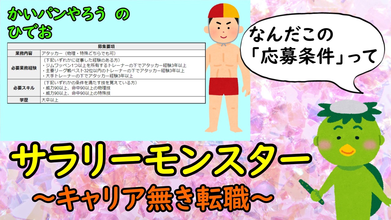 <span style="color: #000000; font-size: 14px;">前</span><a href="https://www.nicovideo.jp/watch/sm37269451" class="watch">sm37269451</a><br>次<a href="https://www.nicovideo.jp/watch/sm37590834" class="watch">sm37590834</a><br><br><span style="color: #000000; font-size: 14px;"><strong>サラリーモンスターシリーズ</strong></span><span style="color: #006699; font-size: 14px;"><a href="https://www.nicovideo.jp/mylist/66273624" target="_blank" rel="noopener">mylist/66273624</a></span><br><span style="color: #000000; font-size: 14px;">Fの就職情報</span><span style="color: #006699; font-size: 14px;"><a href="https://f-syukatu.com" target="_blank" rel="noopener nofollow">https://f-syukatu.com</a></span><br><br><span style="color: #000000; font-size: 14px;"><strong>youtubeチャンネル</strong></span><br><span style="color: #006699; font-size: 14px;"><a href="https://www.youtube.com/playlist?list=PLCjQBaWqLbQ3PSHosCZE-stWkEtyUZ051" target="_blank" rel="noopener nofollow">https://www.youtube.com/playlist?list=PLCjQBaWqLbQ3PSHosCZE-stWkEtyUZ051</a></span><br><br><span style="color: #000000; font-size: 14px;"><strong>ツイッター</strong></span><br><span style="color: #006699; font-size: 14px;"><a href="https://twitter.com/F_kokutiyou" target="_blank" rel="noopener nofollow">https://twitter.com/F_kokutiyou</a></span>