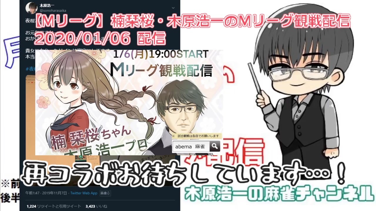 <span style="color: #000000; font-size: 14px;">▶ </span><span style="color: #000000; font-size: 14px;"><strong><a href="#" class="seekTime" data-seekTime="10:09" onclick="seekNicoPlayer('#10:09'); return false;">#10:09</a>:麻雀のゴースティング行為について</strong></span><br><br>今まで交流のあったプロ達も殆ど触れない状況下で切り込んでくれた木原プロ<br><span style="font-size: 14px;">楠栞桜、お前の真の仲間がここにいる……!</span><br><br>▶ 動画にするのが面倒だったネタ:<br>【茜ヶ崎れお】6月27日に何があったのか?【楠栞桜】<br><a href="https://note.com/knskk/n/n25489f76a1f9" target="_blank" rel="noopener nofollow">https://note.com/knskk/n/n25489f76a1f9</a><br><br>▶ 木原浩一プロ YouTube 配信活動の無期限休止を宣言:<br>今回の騒動に対する謝罪と、YouTube活動休止のご報告<br><a href="https://note.com/k_kihara/n/nee2f10ce4df0" target="_blank" rel="noopener nofollow">https://note.com/k_kihara/n/nee2f10ce4df0</a><br><br>▶ 麻雀プロ Vtuber 牛さん (齋藤豪プロ / 天鳳位 gousi) の note (2020/08/29 公開):<br>>自分の言動によってプロ全体、所属団体に、どのような影響があるかを考えるべきなんです。<br><a href="https://note.com/gousi_504/n/ne82fcd0d724c" target="_blank" rel="noopener nofollow">https://note.com/gousi_504/n/ne82fcd0d724c</a><br><br>▶ 元動画 (2020/08/30 配信):<br>【麻雀】月曜を迎えたくない人のための特南ライブ配信 【実況プレイ】<br><a href="https://youtu.be/GA6TL0oHkm4" target="_blank" rel="noopener nofollow">https://youtu.be/GA6TL0oHkm4</a>