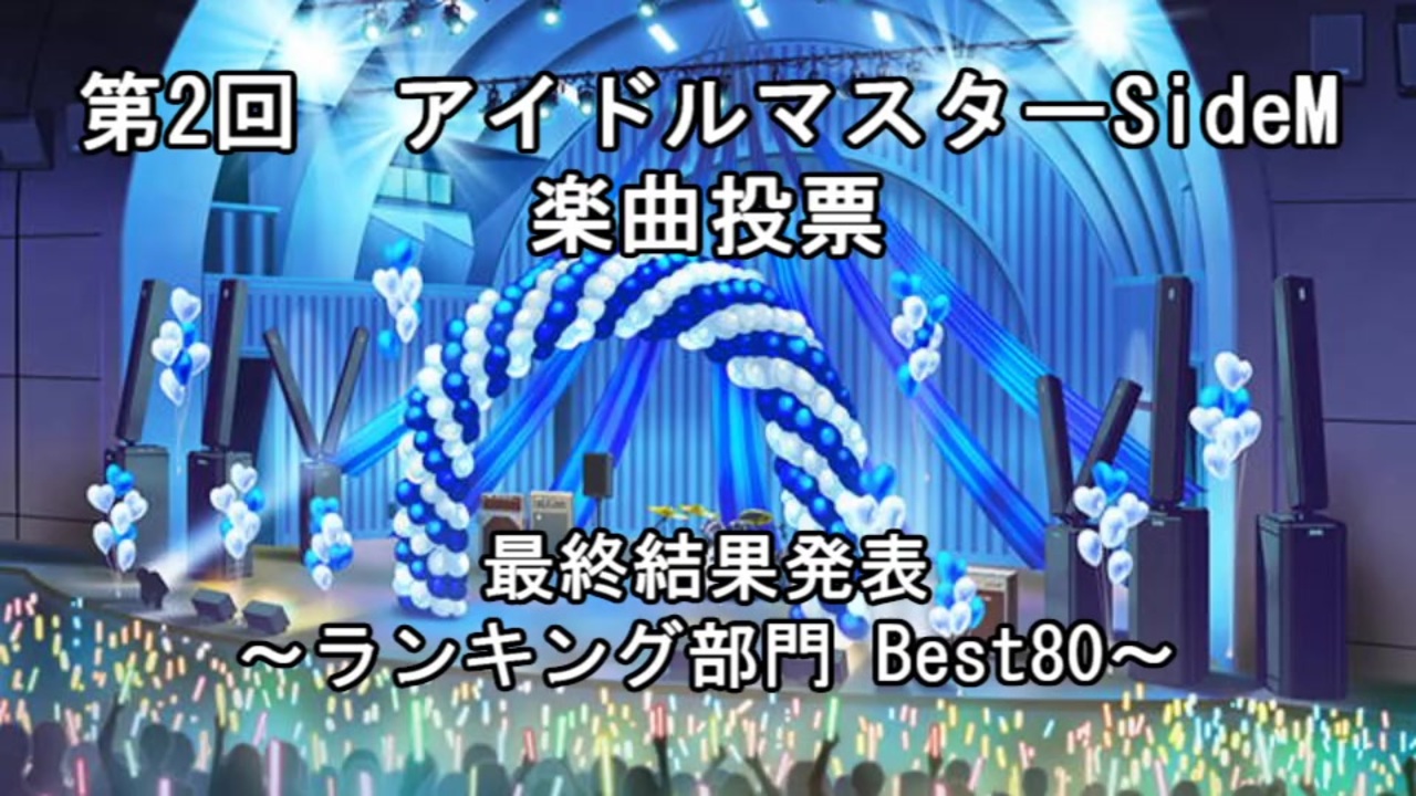 どうも、野々市Pです。<br><br>まず、本企画に参加してくださった1210名の<br>プロデューサーおよびSideMファンの皆様<br>ありがとうございます。<br><br>ランキング部門においては、票数が多かった<br>Best80を紹介いたします。<br>前回は圧倒的な力でムンナイがTOPに立ちましたが<br>第2回の結果もなかなか面白い内容となりました。<br><br>拙い動画ではありますが、是非ご覧ください。<br><br><br>最終結果(◯◯な楽曲部門):sm:37412890<br>Best80データ詳細・コメントまとめ<br><a href="https://docs.google.com/spreadsheets/d/1RofBtLFK58vrVnUqyWzSHi4X8BDfQCJbeVt7Rs_eU6c/edit?usp=sharing" target="_blank" rel="noopener nofollow">https://docs.google.com/spreadsheets/d/1RofBtLFK58vrVnUqyWzSHi4X8BDfQCJbeVt7Rs_eU6c/edit?usp=sharing</a><br><br>楽曲投票関係:<a href="https://www.nicovideo.jp/mylist/33265394" target="_blank" rel="noopener">mylist/33265394</a> <br>twitterはこちら @Side_NonoichiP<br>