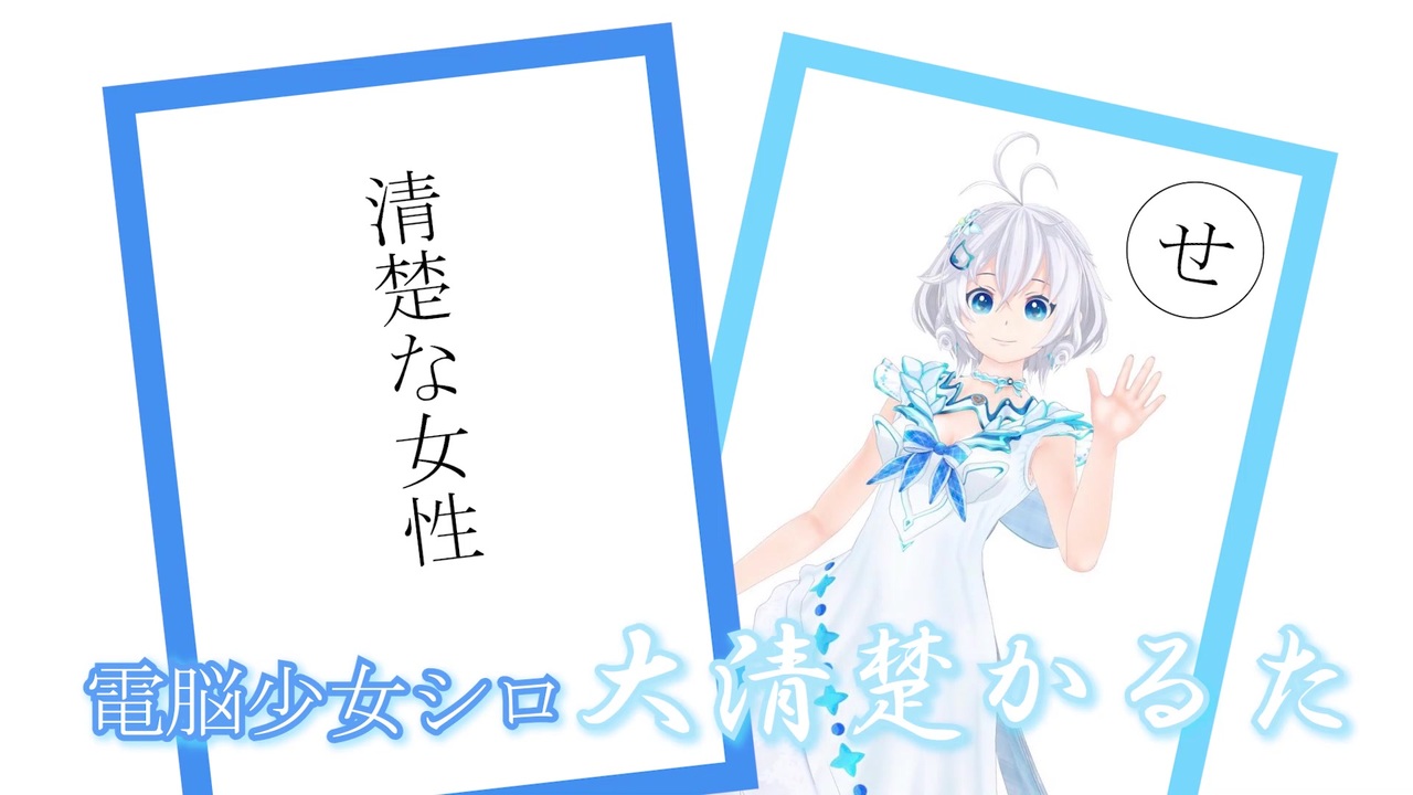 誰かが作れと言っているような気がしたので作りました。<br><br>以下偉大なる先人様の作品です。<br><かえるくん様><br>神楽すず清楚かるた <a href="https://www.nicovideo.jp/watch/sm36987881" class="watch">sm36987881</a><br>神楽すず 新清楚かるた <a href="https://www.nicovideo.jp/watch/sm37227432" class="watch">sm37227432</a><br><此処様><br>神楽すず清楚かるた2組目 <a href="https://www.nicovideo.jp/watch/sm37063104" class="watch">sm37063104</a><br><ac様><br>俗・神楽すず清楚かるた <a href="https://www.nicovideo.jp/watch/sm37301477" class="watch">sm37301477</a><br><此処様><br>獄・神楽すず清楚かるた <a href="https://www.nicovideo.jp/watch/sm37327246" class="watch">sm37327246</a><br><みとわのぼり様><br>ヤマト イオリ清楚かるた <a href="https://www.nicovideo.jp/watch/sm37410431" class="watch">sm37410431</a><br><直線K様><br>花京院ちえり仁義かるた <a href="https://www.nicovideo.jp/watch/sm37432469" class="watch">sm37432469</a><br><むふー様><br>花京院ちえり炉利かるた <a href="https://www.nicovideo.jp/watch/sm37440654" class="watch">sm37440654</a><br>カルロ・ピノ令嬢かるた <a href="https://www.nicovideo.jp/watch/sm37458055" class="watch">sm37458055</a><br><br>シロちゃんのYOUTUBE<br><a href="https://www.youtube.com/channel/UCLhUvJ_wO9hOvv_yYENu4fQ" target="_blank" rel="noopener nofollow">https://www.youtube.com/channel/UCLhUvJ_wO9hOvv_yYENu4fQ</a><br>シロちゃんのTwitter<br><a href="https://twitter.com/SIROyoutuber" target="_blank" rel="noopener nofollow">https://twitter.com/SIROyoutuber</a><br><br>(C)Appland, Inc.<br><br>2020/0906追記:<br>たくさんのご視聴、広告ありがとうございます!
