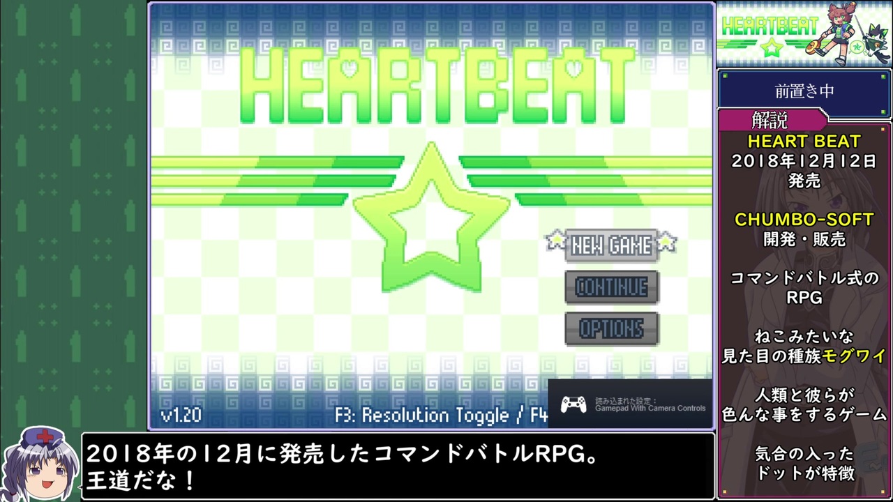 お知らせ◆パート4までBGMがやや大きめです◆<br><br>はーとびーと公式サントラ試聴コーナー<br><a href="https://harmonicblend.bandcamp.com/album/heartbeat-original-soundtrack" target="_blank" rel="noopener nofollow">https://harmonicblend.bandcamp.com/album/heartbeat-original-soundtrack</a><br>購入はSteamからでもおーけ<br><a href="https://store.steampowered.com/app/985110/HEARTBEAT_Original_Soundtrack/" target="_blank" rel="noopener nofollow">https://store.steampowered.com/app/985110/HEARTBEAT_Original_Soundtrack/</a><br><br><br>星から生まれた人類と、大地より生まれたモグワイが住む惑星。<br>両種族は戦争に明け暮れていたが、さる大使の活躍により和平。<br>それよりモグワイは特別な調停者の力を持つ者・・・コンジャラーを求めた。<br>イブと相棒ケット・シー、クラインの旅が始まる。<br><br>2018年発売のツクール製ドットRPG ハートビートのゆっくり実況プレイ。<br><br>NGSD兄貴,DRI兄貴,TMG兄貴,RUNG兄貴,GUS兄貴,POCO兄貴,MS♯兄貴,BMNJU兄貴,<br>UBT兄貴,DURS兄貴,HIRO兄貴,DNTH兄貴,NWR兄貴,VOL兄貴,S-O兄貴,RNMK兄貴,<br>VV9兄貴,FYN兄貴,ZAKO兄貴,広告アリシャス!<br><br>◆ニコニコクリエイターサポート<br><a href="https://creator-support.nicovideo.jp/registration/1203831" target="_blank" rel="noopener nofollow">https://creator-support.nicovideo.jp/registration/1203831</a><br>動画制作の励みになります<br><br>◆Twitter<br><a href="https://twitter.com/ikamono8bit" target="_blank" rel="noopener nofollow">https://twitter.com/ikamono8bit</a><br>◆youtube<br><a href="http://www.youtube.com/c/IkamonoY" target="_blank" rel="noopener nofollow">http://www.youtube.com/c/IkamonoY</a><br><br>◆投稿動画シリーズまとめ<br><a href="https://www.nicovideo.jp/user/1203831/series" target="_blank" rel="noopener nofollow">https://www.nicovideo.jp/user/1203831/series</a>