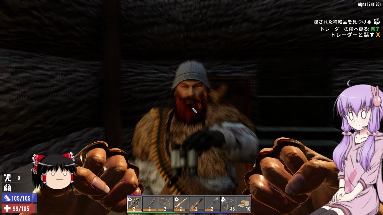 メモリの……周波数?を高くしました<br>hankeiです<br>3600MHz対応メモリだったのを今まで半分くらいで使ってました(よく解ってない)<br><br>3日目から再開<br>引き続きトレーダーさんとこでバイト中……トークンに余裕があるといくらか気が楽ですな<br>α19は序盤の武器や食料不足がよく言われますが、諸々の調整を見ていると<br>やはりトレーダーを軸としたプレイを開発さんは推奨しているのでしょうか?<br>(町の中に配置しておいて頼るなとは言うまい……)<br><br>※クリティカルダメージについていくつか話していますが、<br> まだ良く解ってないので間違っていると思います……<br><br>twitter→@hankei_7DTD<br><a href="https://www.nicovideo.jp/watch/sm37429010" class="watch">sm37429010</a>←前 〔<a href="https://www.nicovideo.jp/mylist/44538445" target="_blank" rel="noopener">mylist/44538445</a>〕次→<a href="https://www.nicovideo.jp/watch/sm37569842" class="watch">sm37569842</a>
