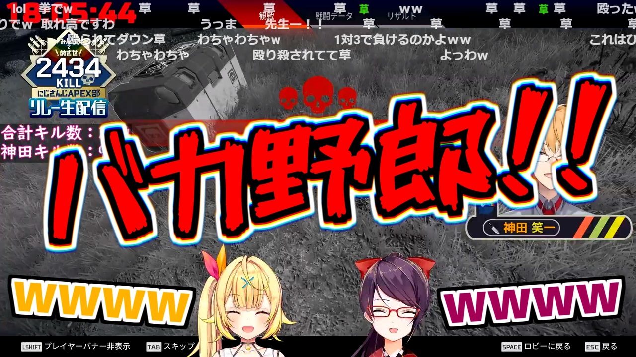 【切り抜き元】<br>●【#APEX部2434キルリレー】このメンツでマジメに戦えんのか?【神田笑一/にじさんじ 】<br><a href="https://www.youtube.com/watch?v=GmKLZRD2U1o" target="_blank" rel="noopener nofollow">https://www.youtube.com/watch?v=GmKLZRD2U1o</a><br><br>【チャンネル】<br>●神田笑一<br><a href="https://www.youtube.com/channel/UCWz0CSYCxf4MhRKPDm220AQ" target="_blank" rel="noopener nofollow">https://www.youtube.com/channel/UCWz0CSYCxf4MhRKPDm220AQ</a><br>●郡道美玲<br><a href="https://www.youtube.com/channel/UCeShTCVgZyq2lsBW9QwIJcw" target="_blank" rel="noopener nofollow">https://www.youtube.com/channel/UCeShTCVgZyq2lsBW9QwIJcw</a><br>●星川サラ<br><a href="https://www.youtube.com/channel/UC9V3Y3_uzU5e-usObb6IE1w" target="_blank" rel="noopener nofollow">https://www.youtube.com/channel/UC9V3Y3_uzU5e-usObb6IE1w</a><br /><br><span style="font-size: 24px;"><strong>【にじさんじ投稿動画】</strong></span><span style="font-size: 13px;"><a href="https://www.nicovideo.jp/mylist/66517030" target="_blank" rel="noopener">mylist/66517030</a></span><br><br>【Twitter】<br><a href="https://twitter.com/Desktop1017" target="_blank" rel="noopener nofollow">https://twitter.com/Desktop1017</a><br>【Youtube】<br><a href="https://www.youtube.com/channel/UCrTTE-QVXsb8QYwcyj3IMkQ" target="_blank" rel="noopener nofollow">https://www.youtube.com/channel/UCrTTE-QVXsb8QYwcyj3IMkQ</a><br><br><span style="color: #000000; font-size: 12px;"><strong>※無断転載禁止※</strong></span><br><br><span style="font-size: 16px;">Youtubeにも投稿しているのでよかったらチャンネル登録よろしくお願いします。</span>