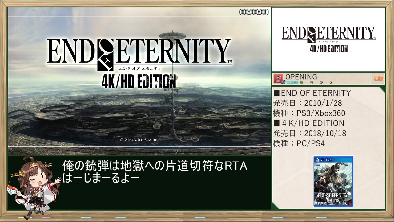 俺のオリチャーは地獄への片道切符!<br><br>【GAME】 <br>END OF ETERNITY 4K/HD EDITION<br>Steam(PC版)<br><br>【レギュレーション】<br>・計測区間:START GAME選択~クリアデータセーブ説明文表示<br><br>【<a href="https://www.nicovideo.jp/mylist/69524868" target="_blank" rel="noopener">mylist/69524868</a>】 <br>PREV≫<a href="https://www.nicovideo.jp/watch/sm37505939" class="watch">sm37505939</a><br>NEXT≫<a href="https://www.nicovideo.jp/watch/sm37542164" class="watch">sm37542164</a><br><br>おまけ(OP比較)≫<a href="https://www.nicovideo.jp/watch/sm37613785" class="watch">sm37613785</a><br><br>≪前作RTA≫【PC版】FINAL FANTASY Ⅸ RTA_9:28:31_Part.1<br>≫<a href="https://www.nicovideo.jp/watch/sm36151772" class="watch">sm36151772</a><br><br>Other Cielo’s Title <br>【<a href="https://www.nicovideo.jp/mylist/50418741" target="_blank" rel="noopener">mylist/50418741</a> 】<br><br>twitter <a href="https://twitter.com/Cielo_Polo" target="_blank" rel="noopener nofollow">https://twitter.com/Cielo_Polo</a>