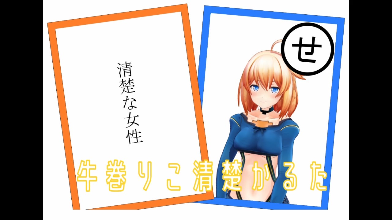 .LIVEアイドル部所属Vtuber・牛巻りこさんの清楚(?)なカルタです<br><br>素材集めにご協力頂いた方々、ありがとうございました!<br><br><br>牛巻りこのYouTubeチャンネル <a href="https://www.youtube.com/channel/UCKUcnaLsG2DeQqza8zRXHiA" target="_blank" rel="noopener nofollow">https://www.youtube.com/channel/UCKUcnaLsG2DeQqza8zRXHiA</a><br>牛巻りこのTwitter <a href="https://twitter.com/UshimakiRiko" target="_blank" rel="noopener nofollow">https://twitter.com/UshimakiRiko</a><br>(2021.4.30卒業)<br><br><br>偉大な先駆者様方 ↓<br>【かえるくん 様】<br><a href="https://www.nicovideo.jp/watch/sm36987881" class="watch">sm36987881</a> 神楽すず清楚かるた<br><a href="https://www.nicovideo.jp/watch/sm37227432" class="watch">sm37227432</a> 神楽すず 新清楚かるた<br>【此処 様】<br><a href="https://www.nicovideo.jp/watch/sm37063104" class="watch">sm37063104</a> 神楽すず清楚かるた 2組目<br><a href="https://www.nicovideo.jp/watch/sm37327246" class="watch">sm37327246</a> 獄・神楽すず清楚かるた<br><a href="https://www.nicovideo.jp/watch/sm37467737" class="watch">sm37467737</a> 神楽すずFall Guysかるた<br>【ac 様】<br><a href="https://www.nicovideo.jp/watch/sm37301477" class="watch">sm37301477</a> 【神楽すず】俗・清楚かるた【アイドル部】<br>【一般白組 様】<br><a href="https://www.nicovideo.jp/watch/sm37496826" class="watch">sm37496826</a> 【ノムリッシュ翻訳】神楽すず世界で一番ピュアかるた<br>【みとわのぼり 様】<br><a href="https://www.nicovideo.jp/watch/sm37410431" class="watch">sm37410431</a> ヤマト イオリ清楚かるた<br>【むふー 様】<br><a href="https://www.nicovideo.jp/watch/sm37440654" class="watch">sm37440654</a> 花京院ちえり炉利かるた<br><a href="https://www.nicovideo.jp/watch/sm37458055" class="watch">sm37458055</a> カルロ・ピノ令嬢かるた<br><a href="https://www.nicovideo.jp/watch/sm37502431" class="watch">sm37502431</a> アイドル部侵略かるた<br>【直線K 様】<br><a href="https://www.nicovideo.jp/watch/sm37432469" class="watch">sm37432469</a> 花京院ちえり仁義かるた<br>【はこぶらんこ 様】<br><a href="https://www.nicovideo.jp/watch/sm37459177" class="watch">sm37459177</a> 電脳少女シロ大清楚かるた<br>【kaito0508 様】<br><a href="https://www.nicovideo.jp/watch/sm37478415" class="watch">sm37478415</a> 金剛いろは清楚かるた<br>【たまたい 様】<br><a href="https://www.nicovideo.jp/watch/sm37489096" class="watch">sm37489096</a> ばあちゃるクソかるた<br>【仲村渠クイナ 様】<br><a href="https://www.nicovideo.jp/watch/sm37514600" class="watch">sm37514600</a> 木曽あずき いろは歌かるた<br>【ヴァラン 様】<br><a href="https://www.nicovideo.jp/watch/sm37519011" class="watch">sm37519011</a> もこ田めめめIQ3イキリキメラかるた<br>【せかじぃ 様】<br><a href="https://www.nicovideo.jp/watch/sm37520317" class="watch">sm37520317</a> 木曽あずき謀反カルタ<br><br>(C)Appland, Inc.