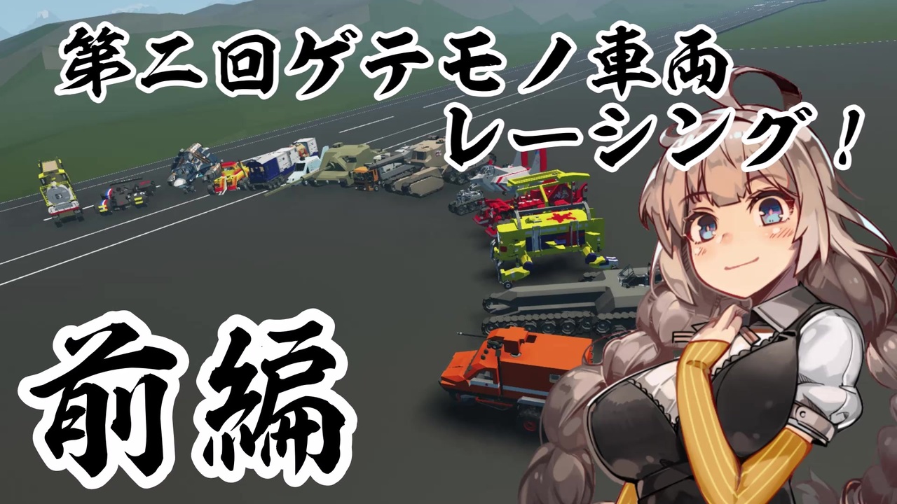 <span style="font-size: 18px;">ゲテモノ車両レーシングとは<br>Stormworks仲間との車両展示・走行会を行い、交流を深めようという<br>気分で計画されたレース大会なのである!<br><br>第二回参加者</span><br>No.1<span style="font-size: 16px;"> </span>たいたぬ (<a href="https://www.nicovideo.jp/user/41035256" target="_blank" rel="noopener">user/41035256</a>) <br>No.2<span style="font-size: 16px;"> </span>09(れいくう) (<a href="https://www.nicovideo.jp/user/32709883" target="_blank" rel="noopener">user/32709883</a>) <br>No.3<span style="font-size: 16px;"> </span>オトカム (<a href="https://www.nicovideo.jp/user/519184" target="_blank" rel="noopener">user/519184</a>)<br>No.4 きしみ仙 (<a href="https://www.nicovideo.jp/user/284304" target="_blank" rel="noopener">user/284304</a>)<br>No.5 ふるにん20 (<a href="https://www.nicovideo.jp/user/90070283" target="_blank" rel="noopener">user/90070283</a>)<br>No.6 Ak1 (<a href="https://www.nicovideo.jp/user/16472395" target="_blank" rel="noopener">user/16472395</a>)<br>No.7 zen<strong>(IsZako)</strong> (<a href="https://www.nicovideo.jp/user/41836182" target="_blank" rel="noopener">user/41836182</a>)<br>No.8 6lucky (<a href="https://www.nicovideo.jp/user/40605042" target="_blank" rel="noopener">user/40605042</a>)<br>No.9 まつなり(<a href="https://www.nicovideo.jp/user/85521070" target="_blank" rel="noopener">user/85521070</a>)<br>No.10 菱合(<a href="https://www.nicovideo.jp/user/26727599" target="_blank" rel="noopener">user/26727599</a>)<br>No.11 虹沢コダマ(<a href="https://www.nicovideo.jp/user/8576580" target="_blank" rel="noopener">user/8576580</a>)<br>No.12 ロンちゃん(<a href="https://www.nicovideo.jp/user/173119" target="_blank" rel="noopener">user/173119</a>)<br>No.13 こころの(<a href="https://www.nicovideo.jp/user/14433628" target="_blank" rel="noopener">user/14433628</a>)<br>No.14 にっける(<a href="https://www.nicovideo.jp/user/796629" target="_blank" rel="noopener">user/796629</a>)<br>No.15 ストーンヘン爺<br>ニコ生中継係 AxDan (<a href="https://www.nicovideo.jp/user/72133165" target="_blank" rel="noopener">user/72133165</a>)<br><br><span style="font-size: 18px;">前編:走行車両紹介<br> 第一レース(ジェット機関搭載車両)</span><br><br><span style="font-size: 24px;">前編:ここ<br>中編:<a href="https://www.nicovideo.jp/watch/sm37546240" class="watch">sm37546240</a><br>後編:<a href="https://www.nicovideo.jp/watch/sm37561634" class="watch">sm37561634</a></span><br><br>