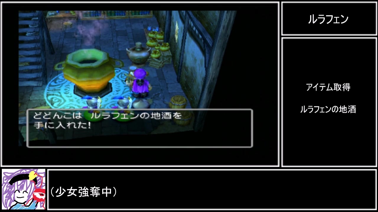 草キメて空を飛ぶくらい気持ちよくなる<br><br><strong>※アーカイブでストーリーが進行している場合、BGMとSEがありません。ご了承下さい。</strong><br><br><br><span style="color: rgba(0, 0, 0, 0.87); font-size: 15px;">【今回の内容】</span><br>ポートセルミ~ルラフェン+アイテム収集<br><br><strong>本動画のプレイ(縛り)内容<br>1.モンスターボックスコンプリート<br>2.アイテムコンプリート(全種類のアイテムを所持する) ※一部不可能なアイテムは妥協<br>3.仲間モンスター全3匹勧誘<br>4.失踪しない</strong><br><br><a href="https://www.nicovideo.jp/watch/sm37541141" class="watch">sm37541141</a>←前 次→<a href="https://www.nicovideo.jp/watch/sm37578181" class="watch">sm37578181</a><br><br>本シリーズまとめ <a href="https://www.nicovideo.jp/mylist/70287027" target="_blank" rel="noopener">mylist/70287027</a><br><br>※一部汚い音声があるので苦手な人はブラバしましょう。<br><br><span style="color: #000000; font-size: 14px;">Youtube版→</span><a href="https://youtu.be/-f-Yfc1zbHs" target="_blank" rel="noopener nofollow">https://youtu.be/-f-Yfc1zbHs</a><br><br>©2004 ARMOR PROJECT/BIRD STUDIO/ARTEPIAZZA/SQUARE ENIX All Rights Reserved.<br>©KOICHI SUGIYAMA