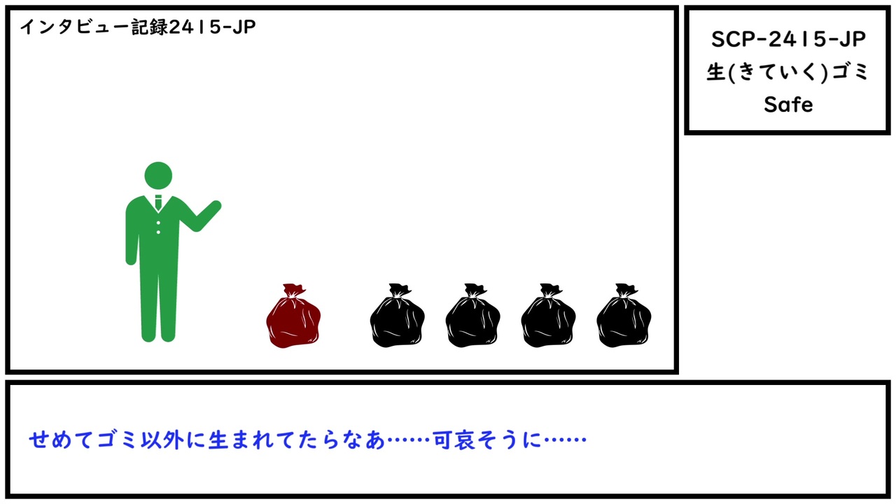 くさそう<br><br><span style="color: rgba(0, 0, 0, 0.87); font-size: 15px;">本家記事 </span><a href="http://scp-jp.wikidot.com/scp-2415-jp" target="_blank" rel="noopener nofollow">http://scp-jp.wikidot.com/scp-2415-jp</a><br><span style="color: rgba(0, 0, 0, 0.87); font-size: 15px;">作者 </span>bamboon<br><span style="color: rgba(0, 0, 0, 0.87); font-size: 15px;">SCP財団 <a href="http://scp-jp.wikidot.com" target="_blank" rel="noopener nofollow">http://scp-jp.wikidot.com</a></span><br><span style="color: #000000; font-size: 14px;">過去の動画はこちら </span><span style="color: #006699; font-size: 14px;"><a href="https://www.nicovideo.jp/mylist/67620202" target="_blank" rel="noopener">mylist/67620202</a></span><br><span style="color: rgba(0, 0, 0, 0.87); font-size: 15px;">CC-BY-SA 3.0</span>