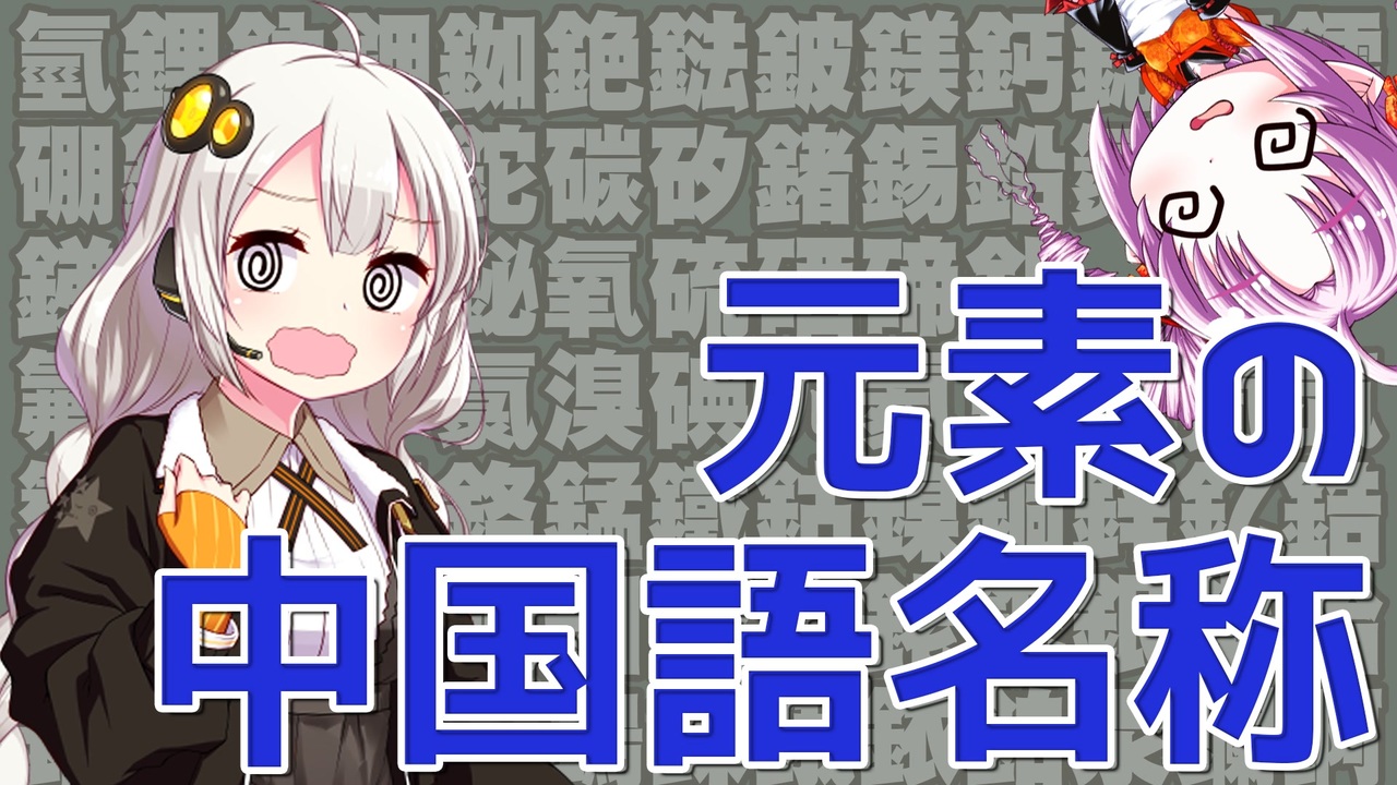 氟鈾碳鉀釔氧鈾(FUCK YOU)みたいな暗号、中学の時めっちゃ流行った。<br><br><span style="color: #ff0000;">20201016追記:「方法の方」を指摘した兄貴姉貴ありがとうございます、両方とも当てたこと全然気がつきませんで。</span><br><br>Youtube→<a href="https://www.youtube.com/watch?v=GTfYZO_KfKM" target="_blank" rel="noopener nofollow">https://www.youtube.com/watch?v=GTfYZO_KfKM</a><br>Niconico→<a href="https://www.nicovideo.jp/watch/sm37580938" target="_blank" rel="noopener nofollow">https://www.nicovideo.jp/watch/sm37580938</a><br><br>Illustration:<br>紲星あかり(blueberryさん)<br>SD役ついな(しのびぃ~さん)<br>いらすとや<br><br>Music:<br>Temptation(Chris Haugenさん)<br><br><span style="font-size: 10px;"><i>検索用タグ:元素記号、元素周期表、五行思想、明朝、五四運動、徐寿、宇田川榕菴</i></span><br><br><span style="color: rgba(0, 0, 0, 0.87); font-size: 15px;">|</span><span style="font-size: 12pt;">ボロボロ日本語</span><span style="color: rgba(0, 0, 0, 0.87); font-size: 15px;">シリーズ|</span><br><a href="https://www.nicovideo.jp/mylist/69207343" target="_blank" rel="noopener">mylist/69207343</a><br>