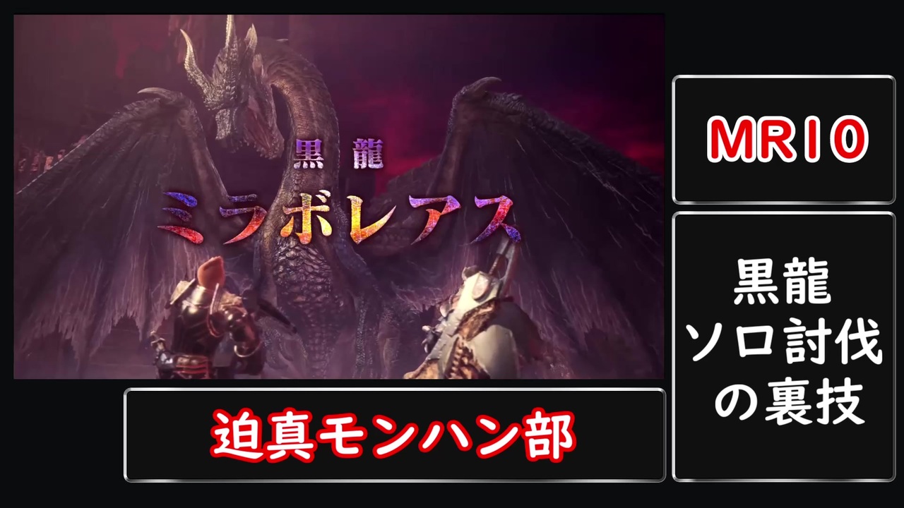 PS5落選したので初投稿です。<br>ミラボレアスクッソ強いんですけど・・・(絶句)<br>なんとか初日でクリアできました。<br><br><br>MHXXのミラくんはコ↑コ↓ <a href="https://www.nicovideo.jp/watch/sm37624105" class="watch">sm37624105</a><br><br>~追記~<br>ファッ!?2万再生!?いっぱい見てくれてありがとナス!<br>コメントいいねマイリス広告もウレシイウレシイ<br><br>あと私は別に上手いわけじゃないしお豆腐メンタルなので、初日のなんにもわかんないプレイをボロカスに言われるとメンタルブレイクしちゃいます<br>雑魚がなんとか倒せた動画をそれっぽく編集してるだけなので許してください、ずびばぜん<br><br>--------------------------------------------------<br><br>◇迫真モンハン部<br><br>〇前回(アルバ)→<a href="https://www.nicovideo.jp/watch/sm37178469" class="watch">sm37178469</a><br><br>〇次回(キンタマRTA)→<a href="https://www.nicovideo.jp/watch/sm38888084" class="watch">sm38888084</a><br><br><br><br>◇MGRoid<br><br>〇前回(幽霊東京)→<a href="https://www.nicovideo.jp/watch/sm37020573" class="watch">sm37020573</a><br><br>〇次回→未定<br><br>---------------------------------------------------<br><br>#MHW:I #ミラボレアス #ゲーム実況