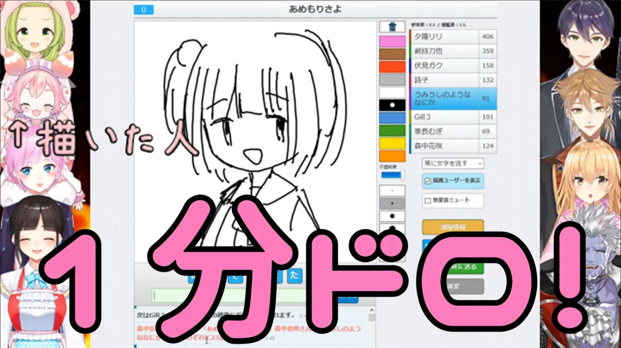 正確には約1分ですが細かい事は気にしなーい<br><br>ふわっちの髪があっと言う間に描き上げられていく様は一見の価値ありです<br><br>元動画<br>【緊急企画】急遽二期生出身に招集かけたら何人集まるか?【にじさんじ所属】<br><a href="https://www.youtube.com/watch?v=wDDAGJ9N7dY&t=3992s" target="_blank" rel="noopener nofollow">https://www.youtube.com/watch?v=wDDAGJ9N7dY&t=3992s</a><br><br>二期生出身ライバー<br>宇志海いちご<br><a href="https://www.youtube.com/channel/UCmUjjW5zF1MMOhYUwwwQv9Q" target="_blank" rel="noopener nofollow">https://www.youtube.com/channel/UCmUjjW5zF1MMOhYUwwwQv9Q</a><br>森中花咲<br><a href="https://www.youtube.com/channel/UCtpB6Bvhs1Um93ziEDACQ8g" target="_blank" rel="noopener nofollow">https://www.youtube.com/channel/UCtpB6Bvhs1Um93ziEDACQ8g</a><br>家長むぎ<br><a href="https://www.youtube.com/channel/UC_GCs6GARLxEHxy1w40d6VQ" target="_blank" rel="noopener nofollow">https://www.youtube.com/channel/UC_GCs6GARLxEHxy1w40d6VQ</a><br>ギルザレンIII世<br><a href="https://www.youtube.com/channel/UCUzJ90o1EjqUbk2pBAy0_aw" target="_blank" rel="noopener nofollow">https://www.youtube.com/channel/UCUzJ90o1EjqUbk2pBAy0_aw</a><br>剣持刀也<br><a href="https://www.youtube.com/channel/UCv1fFr156jc65EMiLbaLImw" target="_blank" rel="noopener nofollow">https://www.youtube.com/channel/UCv1fFr156jc65EMiLbaLImw</a><br>鈴鹿詩子<br><a href="https://www.youtube.com/channel/UCwokZsOK_uEre70XayaFnzA" target="_blank" rel="noopener nofollow">https://www.youtube.com/channel/UCwokZsOK_uEre70XayaFnzA</a><br>伏見ガク<br><a href="https://www.youtube.com/channel/UCXU7YYxy_iQd3ulXyO-zC2w" target="_blank" rel="noopener nofollow">https://www.youtube.com/channel/UCXU7YYxy_iQd3ulXyO-zC2w</a><br>夕陽リリ<br><a href="https://www.youtube.com/channel/UC48jH1ul-6HOrcSSfoR02fQ" target="_blank" rel="noopener nofollow">https://www.youtube.com/channel/UC48jH1ul-6HOrcSSfoR02fQ</a><br>物述有栖<br><a href="https://www.youtube.com/channel/UCt0clH12Xk1-Ej5PXKGfdPA" target="_blank" rel="noopener nofollow">https://www.youtube.com/channel/UCt0clH12Xk1-Ej5PXKGfdPA</a><br>文野環<br><a href="https://www.youtube.com/channel/UCBiqkFJljoxAj10SoP2w2Cg" target="_blank" rel="noopener nofollow">https://www.youtube.com/channel/UCBiqkFJljoxAj10SoP2w2Cg</a><br><br>お題になったライバー<br>雨森小夜<br><a href="https://www.youtube.com/channel/UCRWOdwLRsenx2jLaiCAIU4A" target="_blank" rel="noopener nofollow">https://www.youtube.com/channel/UCRWOdwLRsenx2jLaiCAIU4A</a><br>不破湊<br><a href="https://www.youtube.com/channel/UC6wvdADTJ88OfIbJYIpAaDA" target="_blank" rel="noopener nofollow">https://www.youtube.com/channel/UC6wvdADTJ88OfIbJYIpAaDA</a>