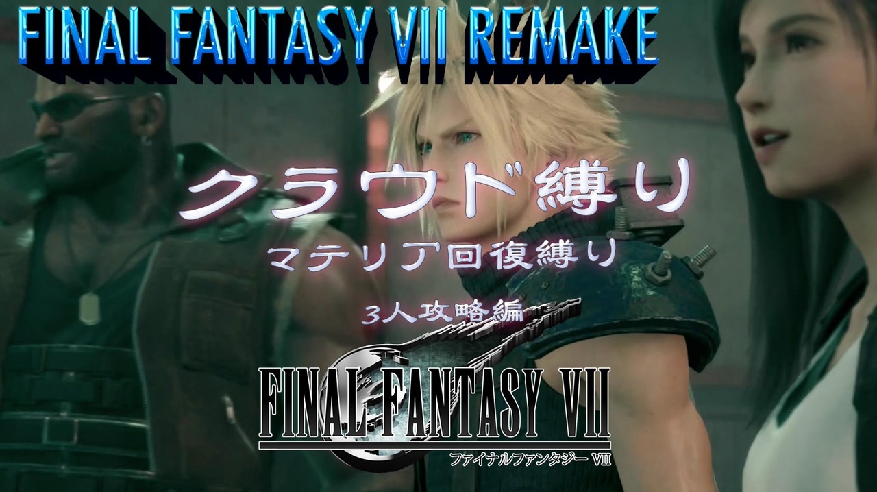 Copyright (C) 1997, 2019 SQUARE ENIX CO., LTD. All Rights Reserved.<br><span style="font-size: 18px;"><strong>縛り項目<br>壱 クラウドソロ&PT攻略<br>弐 レベルは最低限(バグは使わない)<br>参 武器改造&変更はOK<br>四 マテリアはボス撃破でお好きなのを1獲得(クラウド編)<br> PT攻略は獲得マテリアのみ<br>五 ボス中の回復行為はNG<br>六 難易度はノーマル</strong></span><br><br><span style="color: #ff0000; font-size: 24px;">youtubeアカウントの登録もお願いします!<br><br><a href="https://www.youtube.com/channel/UCjdaDoUkevvX17CYzlFys_Q" target="_blank" rel="noopener nofollow">https://www.youtube.com/channel/UCjdaDoUkevvX17CYzlFys_Q</a></span><br><br><span style="font-size: 18px;"><strong>今までの縛りプレイのマイリスト</strong></span><br><span style="color: #38761d; font-size: 16px;">コメントで選ばれたキャラでFF4ソロ縛り⇒<a href="https://www.nicovideo.jp/mylist/31905690" target="_blank" rel="noopener">mylist/31905690</a></span><br><span style="color: #4a86e8; font-size: 16px;"><strong>FF10キマリ縛り⇒<a href="https://www.nicovideo.jp/mylist/47887983" target="_blank" rel="noopener">mylist/47887983</a></strong></span><span style="font-size: 16px;"><strong> </strong></span><br>再走FF7⇒<a href="https://www.nicovideo.jp/mylist/68022305" target="_blank" rel="noopener">mylist/68022305</a><br>前回⇒<a href="https://www.nicovideo.jp/watch/sm37589044" class="watch">sm37589044</a><br>体験版→ <a href="https://www.nicovideo.jp/watch/sm36485210" class="watch">sm36485210</a> 次回→<a href="https://www.nicovideo.jp/watch/sm37674905" class="watch">sm37674905</a><br><br><span style="font-size: 16px;"><strong>たまに生放送で稼ぎなどしてます</strong></span><br><span style="color: #00ffff; font-size: 16px;"><strong>生放送⇒co3029417</strong></span><br><span style="font-size: 18px;"><strong>動画更新告知、生放送などの情報はツイッターで!<br><a href="https://twitter.com/dhuerunahito" target="_blank" rel="noopener nofollow">https://twitter.com/dhuerunahito</a></strong></span><br>