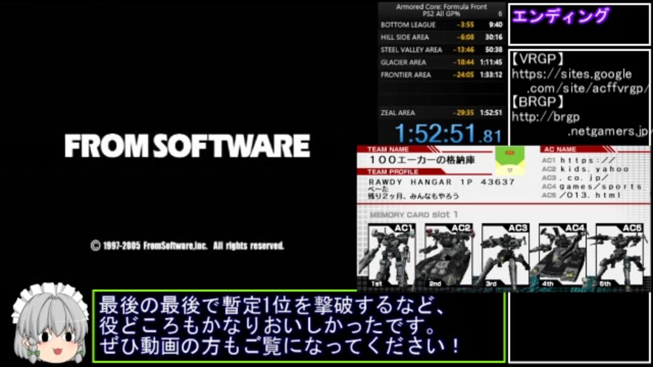 パート分けガバで動画時間が30分オーバーになりました。ユルシテ<br><br>※追記:ゲーム内倍速の仕様で試合中は画面がカクカクします。ご注意ください!<br><br>ルール<br>・計測区間:チーム名決定~シーズン優勝のトロフィー表示まで<br>・NEW GAMEから開始すること<br>・全GP優勝でのシーズン優勝をすること<br>・試合のギブアップは可<br>・PSP版とのデータ連動は不可<br>・バグ利用可(意図的な利用/回避が困難なので)<br><br>FFAレコード挑戦動画 → <a href="https://youtu.be/bTc9KJznCnw" target="_blank" rel="noopener nofollow">https://youtu.be/bTc9KJznCnw</a><br><br>VRGP様大会用サイト → <a href="https://sites.google.com/site/acffvrgp/" target="_blank" rel="noopener nofollow">https://sites.google.com/site/acffvrgp/</a><br>axis2000XP様大会用サイト(休止中、アーカイブ閲覧用) → <a href="http://brgp.netgamers.jp/" target="_blank" rel="noopener nofollow">http://brgp.netgamers.jp/</a><br><span style="color: #ffffff;">みんなが大好きなゲーム → <a href="https://kids.yahoo.co.jp/games/sports/013.html" target="_blank" rel="noopener nofollow">https://kids.yahoo.co.jp/games/sports/013.html</a></span><br><br>前 → <a href="https://www.nicovideo.jp/watch/sm37585583" class="watch">sm37585583</a><br>無編集版 → <a href="https://youtu.be/hCqTdzoFEeU" target="_blank" rel="noopener nofollow">https://youtu.be/hCqTdzoFEeU</a><br>part1集 → <a href="https://www.nicovideo.jp/mylist/65413425" target="_blank" rel="noopener">mylist/65413425</a>