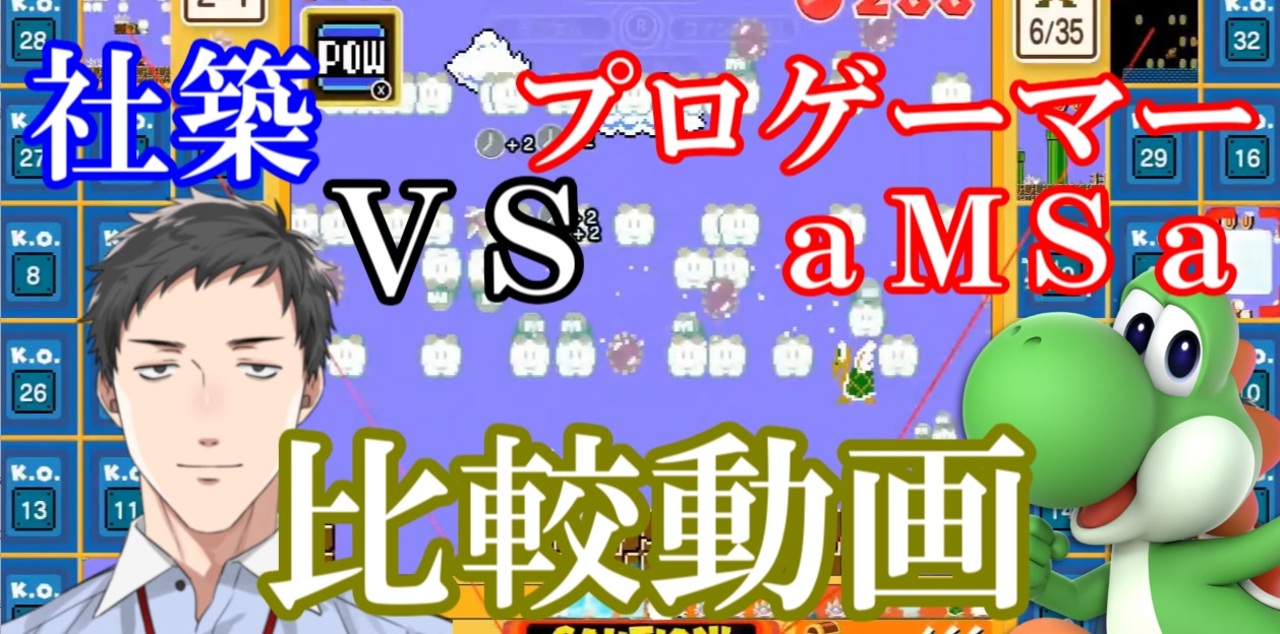自分が見たかったので、やしきずとスマブラプロゲーマーのaMSaさんの間で勃発したジュゲム大戦争の両者視点の比較動画を作りました。<br><br><br>【元動画】<br>【スーパーマリオ35】スペシャルバトル解禁&攻略!現環境はジュゲム地獄!?【にじさんじ/社築】<br><a href="https://www.youtube.com/watch?v=ZViKeOcQ4Bg" target="_blank" rel="noopener nofollow">https://www.youtube.com/watch?v=ZViKeOcQ4Bg</a><br><br>【マリオ35】にじさんじ社築 vs プロゲーマーaMSaの超激闘!!【aMSa視点動画】<br><a href="https://www.youtube.com/watch?v=XcSFgwXboAM" target="_blank" rel="noopener nofollow">https://www.youtube.com/watch?v=XcSFgwXboAM</a><br><br>【社築視点切り抜き動画】<br>優位性ありと宣戦布告した社築、プロゲーマとのジュゲム大戦争が勃発してしまう【にじさんじ切り抜き】<br><a href="https://www.nicovideo.jp/watch/sm37657854" target="_blank" rel="noopener nofollow">https://www.nicovideo.jp/watch/sm37657854</a>