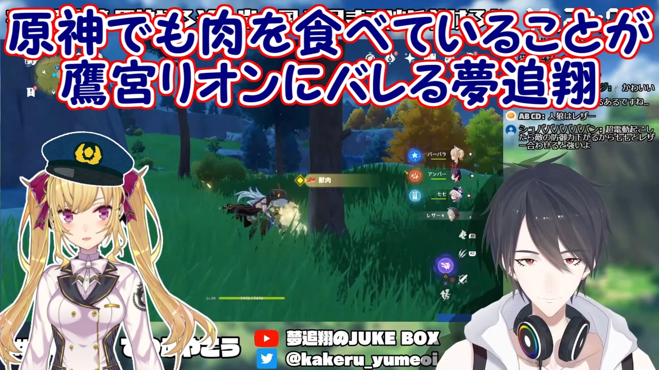 あちゃ~ ゆめおこっちでも肉キメちゃったか~<br><br>本家参考動画<br>・夢追翔<br>【原神/Genshin】#04 璃月編突入!モンドより更に広いってマジ?【にじさんじ/夢追翔】<br><a href="https://youtu.be/sj6mC12a9wE" target="_blank" rel="noopener nofollow">https://youtu.be/sj6mC12a9wE</a><br><br>参考元チャンネル&Twitter<br>・夢追翔<br><a href="https://www.youtube.com/channel/UCTIE7LM5X15NVugV7Krp9Hw" target="_blank" rel="noopener nofollow">https://www.youtube.com/channel/UCTIE7LM5X15NVugV7Krp9Hw</a><br><a href="https://twitter.com/kakeru_yumeoi" target="_blank" rel="noopener nofollow">https://twitter.com/kakeru_yumeoi</a><br>・鷹宮リオン<br><a href="https://www.youtube.com/channel/UCV5ZZlLjk5MKGg3L0n0vbzw" target="_blank" rel="noopener nofollow">https://www.youtube.com/channel/UCV5ZZlLjk5MKGg3L0n0vbzw</a><br><a href="https://twitter.com/TakamiyaRion" target="_blank" rel="noopener nofollow">https://twitter.com/TakamiyaRion</a><br><br>ニコニコのダイコンマンリスト<br>「バーチャルYouTuberシリーズ」↓<br><a href="https://www.nicovideo.jp/mylist/62551838" target="_blank" rel="noopener">mylist/62551838</a><br>「バーチャルYouTuberシリーズ2」↓<br><a href="https://www.nicovideo.jp/mylist/67858437" target="_blank" rel="noopener">mylist/67858437</a><br><br>YouTubeのダイコンマンチャンネル<br><a href="https://www.youtube.com/channel/UCkpfR11cG2kk9KTJijWCJfg" target="_blank" rel="noopener nofollow">https://www.youtube.com/channel/UCkpfR11cG2kk9KTJijWCJfg</a><br><br>ダイコンマンのTwitter<br><a href="https://twitter.com/Daikon_Man_V" target="_blank" rel="noopener nofollow">https://twitter.com/Daikon_Man_V</a>