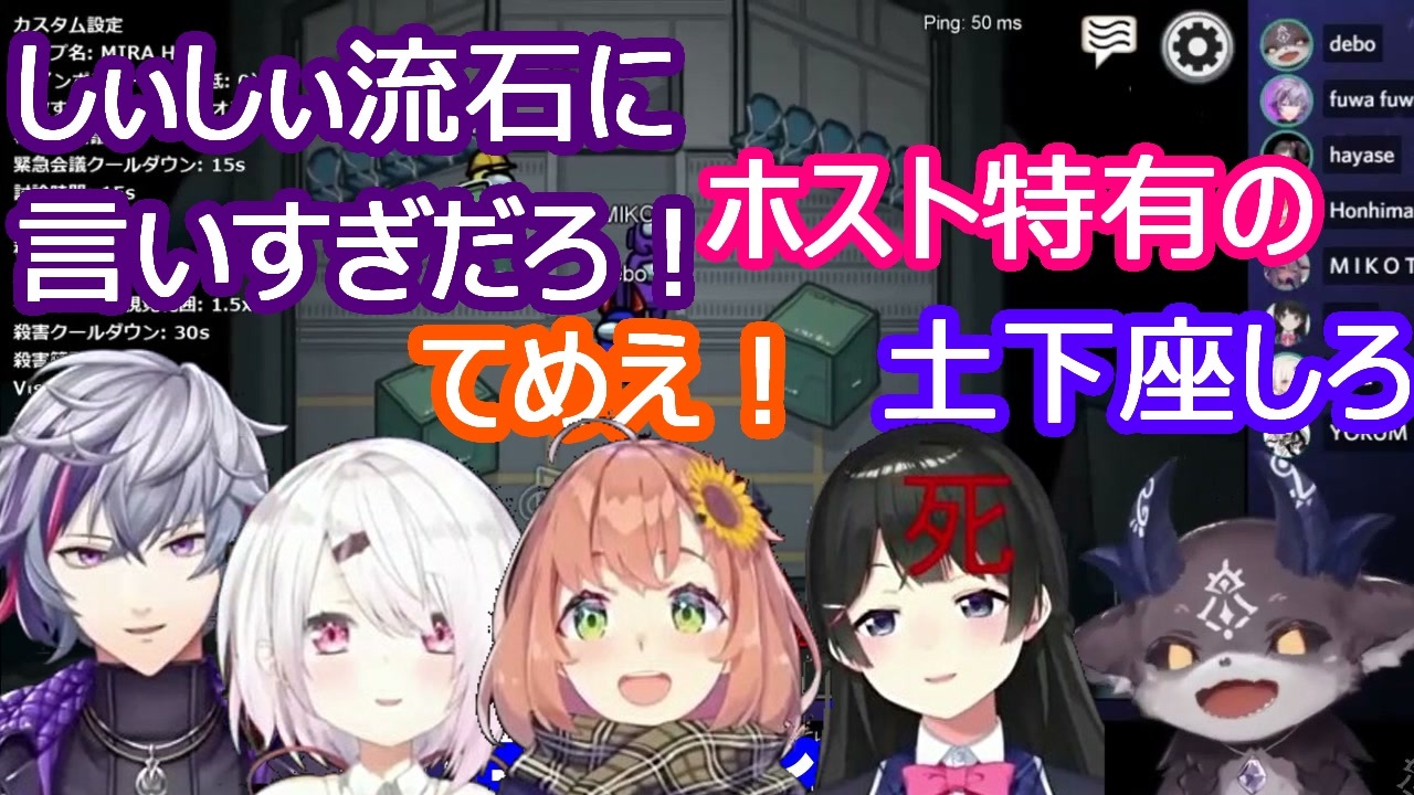 両手に花ってレベルじゃねぇぞこれ<br>第1回の第5試合途中からです。<br>はやちぇ強い。<br><br><br>○切り抜き元動画(敬称略)<br><br>椎名唯華<br>【Among US】全員ぶっ倒すう~♩#にじ宇宙人狼【にじさんじ/椎名唯華】<br><a href="https://youtu.be/wDoGOmz67NM" target="_blank" rel="noopener nofollow">https://youtu.be/wDoGOmz67NM</a><br><br>不破湊<br>【Among Us】両手に花ってレベルじゃねぇぞこれ!! #にじ宇宙人狼 【にじさんじ】<br><a href="https://youtu.be/2c2AWL-6aOs" target="_blank" rel="noopener nofollow">https://youtu.be/2c2AWL-6aOs</a><br><br>本間ひまわり<br>【Among US】この中に "二人" 裏切者がいる。【本間ひまわり/#にじ宇宙人狼】<br><a href="https://youtu.be/6x_1jGzY9Zs" target="_blank" rel="noopener nofollow">https://youtu.be/6x_1jGzY9Zs</a><br><br>早瀬走<br>【Among Us】8人の最恐メンバーで宇宙人狼【#にじ宇宙人狼】<br><a href="https://youtu.be/dH2TpZB7qGk" target="_blank" rel="noopener nofollow">https://youtu.be/dH2TpZB7qGk</a><br><br>月ノ美兎<br>【#にじ宇宙人狼】疑い合い、はじめました【Among US/月ノ美兎】<br><a href="https://youtu.be/2Y_RQXRztkc" target="_blank" rel="noopener nofollow">https://youtu.be/2Y_RQXRztkc</a><br><br>でびでび・でびる<br>【#にじ宇宙人狼】ころせーーーーッ!【にじさんじ/でびでび・でびる】<br><a href="https://youtu.be/Yukqf-aBnJc" target="_blank" rel="noopener nofollow">https://youtu.be/Yukqf-aBnJc</a><br><br>竜胆尊<br>【#にじ宇宙人狼】噓下手な鬼が慌てるさまを見る配信【 竜胆尊 / にじさんじ 】<br><a href="https://youtu.be/jv7Y3ggL3-0" target="_blank" rel="noopener nofollow">https://youtu.be/jv7Y3ggL3-0</a><br><br>夜見れな<br>【Among Us】だーーれだっ!! みーつけた #にじ宇宙人狼【夜見れな/にじさんじ】<br><a href="https://youtu.be/SGh6-h7sP-o" target="_blank" rel="noopener nofollow">https://youtu.be/SGh6-h7sP-o</a><br><br />Twitter⇒ @maccha877
