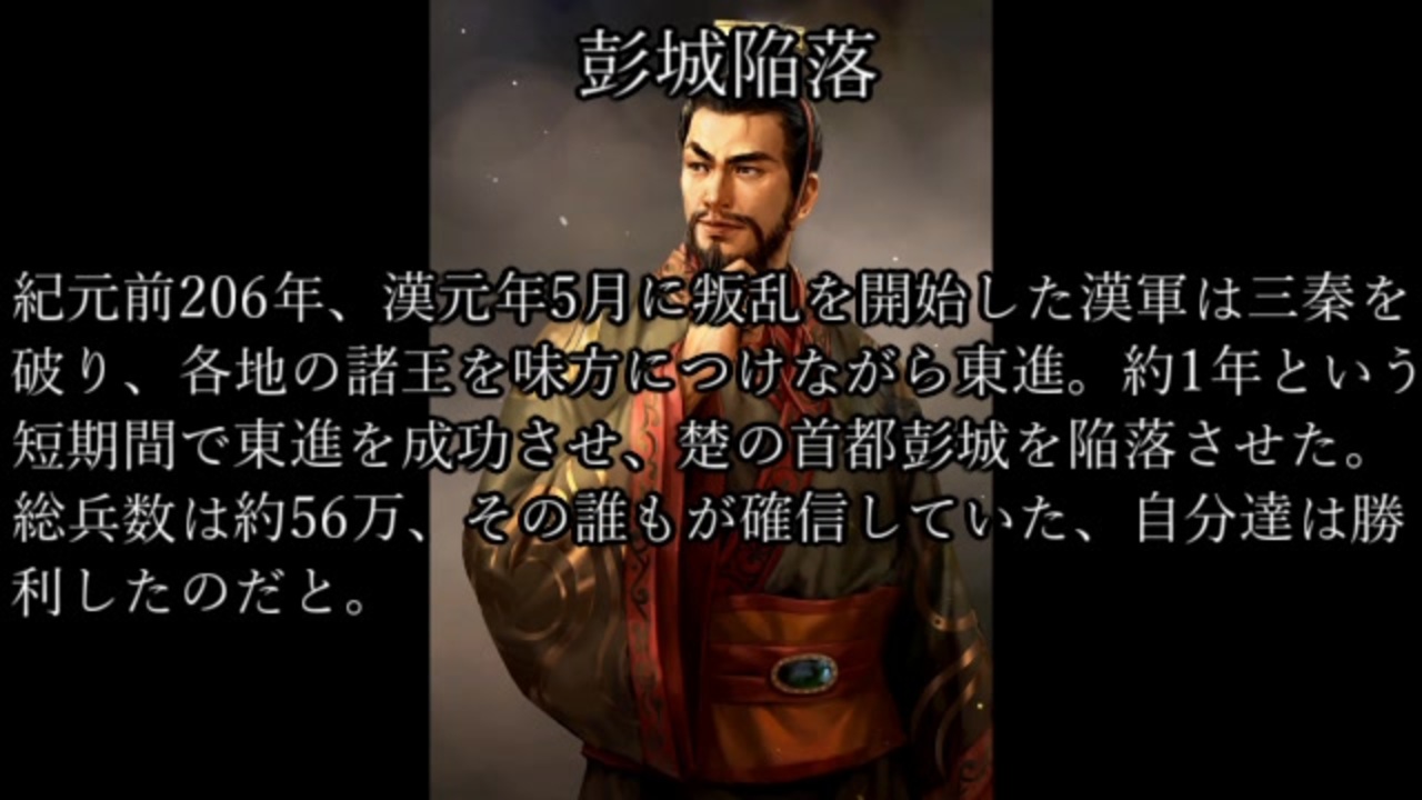 楚漢戦争を解説していきます。<br>いにしえ武将紹介から大きく外れますが、三國志シリーズの立ち絵を使うので、 タイトルとタグには三國志を含みます。<br>劇中の物事の経緯や登場人物の性格など、かなり自分なりの私見を含みますのでご注意ください。<br><br>来週にはライダー、11月にはアサクリ、12月は14PK<br>まーた動画作るの遅くなるよ<br><br>楚漢戦争<a href="https://www.nicovideo.jp/mylist/63092896" target="_blank" rel="noopener">mylist/63092896</a><br><br>いにしえ武将紹介<a href="https://www.nicovideo.jp/mylist/61740403" target="_blank" rel="noopener">mylist/61740403</a><br><br>パチュリー先生<a href="https://www.nicovideo.jp/mylist/64874923" target="_blank" rel="noopener">mylist/64874923</a><br><br><a href="https://www.nicovideo.jp/watch/sm37641893" class="watch">sm37641893</a>←前 次→<a href="https://www.nicovideo.jp/watch/sm37730833" class="watch">sm37730833</a>
