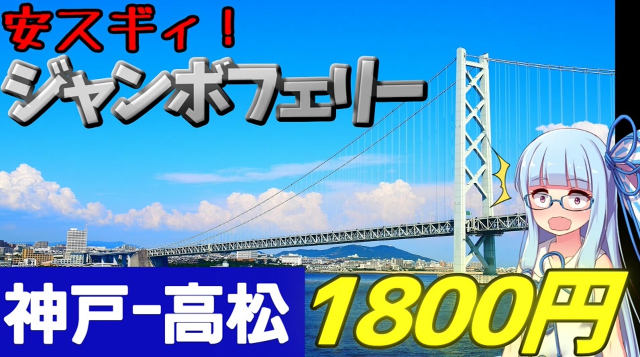 数ある本州四国連絡ルートの中で最も安いと思われるジャンボフェリーで高松に向かいます。<br><br>10分でわかる国道の歴史:<br><a href="https://youtu.be/dFEoT_nSrRI" target="_blank" rel="noopener nofollow">https://youtu.be/dFEoT_nSrRI</a><br><br>引用1:<br>Monument of Shikoku Northernmost<br>アラツク CC 表示-継承 4.0 <a href="https://commons.wikimedia.org/wiki/File:Monument_of_Shikoku_Northernmost.JPG" target="_blank" rel="noopener nofollow">https://commons.wikimedia.org/wiki/File:Monument_of_Shikoku_Northernmost.JPG</a><br><br>当チャンネルでは週1~3本程度のペースで旅行動画や交通系解説動画をアップロードしております。旅先で友人に知識でマウントをとりたい方は是非ご覧ください。<br><br>BGM:<br>Flower_field(FLASH☆BEAT さん)<br>カナリアスキップ(まんぼう二等兵 さん)<br>キューブスカイ(かずち さん)<br>15 years ago(稿屋 隆 さん) <br>春よ、強く美しく(龍崎一 さん)<br><br><span style="color: rgba(0, 0, 0, 0.87); font-size: 15px;">その他動画:</span><br><a href="https://www.nicovideo.jp/mylist/67716562" target="_blank" rel="noopener">mylist/67716562</a><br><br><span style="color: rgba(0, 0, 0, 0.87); font-size: 15px;">OSM:<br><a href="http://www.openstreetmap.org/copyright" target="_blank" rel="noopener nofollow">http://www.openstreetmap.org/copyright</a><br><br>Twitter:<br><a href="http://twitter.com/japanroute43" target="_blank" rel="noopener nofollow">http://twitter.com/japanroute43</a></span><br><br>yotube:<br><a href="http://www.youtube.com/channel/UCZAr1Ra4mMc3X5kD-iEhhlg" target="_blank" rel="noopener nofollow">http://www.youtube.com/channel/UCZAr1Ra4mMc3X5kD-iEhhlg</a><br><br>解説チャンネル:<br><a href="http://www.youtube.com/channel/UCDLjMy2r55cJ0pnBUZDMkKA" target="_blank" rel="noopener nofollow">http://www.youtube.com/channel/UCDLjMy2r55cJ0pnBUZDMkKA</a><br><br>