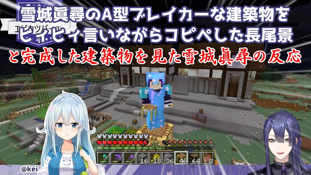 まひまひ、長尾はよくやったよ<br>所々に散りばめられたまひまひポイントに苦しめられながらも<br>コピペを完遂したんだからな<br><br>事の発端はこちら↓<br><a href="https://www.nicovideo.jp/watch/sm37699980" class="watch">sm37699980</a><br><br>本家参考動画<br>・長尾景<br>【マイクラ】まひさんちをコピペする(物理)【にじさんじ/長尾景】<br><a href="https://youtu.be/CjnTISq18ak" target="_blank" rel="noopener nofollow">https://youtu.be/CjnTISq18ak</a><br>・雪城眞尋<br>【Minecraft】にじ鯖の私の家が無事で無事じゃなかったので神に救済を求めてみた(え?)¦たれさし返仕に景尾長【雪城眞尋/にじさんじ】<br><a href="https://youtu.be/U1VuNs2eUCI" target="_blank" rel="noopener nofollow">https://youtu.be/U1VuNs2eUCI</a><br><br>参考元チャンネル&Twitter<br>・長尾景<br><a href="https://www.youtube.com/channel/UCXW4MqCQn-jCaxlX-nn-BYg" target="_blank" rel="noopener nofollow">https://www.youtube.com/channel/UCXW4MqCQn-jCaxlX-nn-BYg</a><br><a href="https://twitter.com/kei_nagao2434" target="_blank" rel="noopener nofollow">https://twitter.com/kei_nagao2434</a><br>・雪城眞尋<br><a href="https://www.youtube.com/channel/UCHX7YpFG8rVwhsHCx34xt7w" target="_blank" rel="noopener nofollow">https://www.youtube.com/channel/UCHX7YpFG8rVwhsHCx34xt7w</a><br><a href="https://twitter.com/MahiroYukishiro" target="_blank" rel="noopener nofollow">https://twitter.com/MahiroYukishiro</a><br>・フミ<br><a href="https://www.youtube.com/channel/UCwrjITPwG4q71HzihV2C7Nw" target="_blank" rel="noopener nofollow">https://www.youtube.com/channel/UCwrjITPwG4q71HzihV2C7Nw</a><br><a href="https://twitter.com/FumiVirtual" target="_blank" rel="noopener nofollow">https://twitter.com/FumiVirtual</a><br><br>チョロ さん<br>なとり さん<br>miyaso さん<br>これすき さん<br>広告ありがとうございます<br><br>ニコニコのダイコンマンリスト<br>「バーチャルYouTuberシリーズ」↓<br><a href="https://www.nicovideo.jp/mylist/62551838" target="_blank" rel="noopener">mylist/62551838</a><br>「バーチャルYouTuberシリーズ2」↓<br><a href="https://www.nicovideo.jp/mylist/67858437" target="_blank" rel="noopener">mylist/67858437</a><br><br>YouTubeのダイコンマンチャンネル<br><a href="https://www.youtube.com/channel/UCkpfR11cG2kk9KTJijWCJfg" target="_blank" rel="noopener nofollow">https://www.youtube.com/channel/UCkpfR11cG2kk9KTJijWCJfg</a><br><br>ダイコンマンのTwitter<br><a href="https://twitter.com/Daikon_Man_V" target="_blank" rel="noopener nofollow">https://twitter.com/Daikon_Man_V</a>