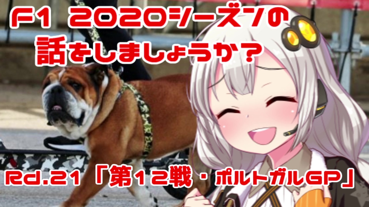「サムネのわんこはハミルトンの愛犬・ロスコー君です。」by紲星あかり<br><br><br>おはこんばんちは、紲星あかりです。<br>この動画は、F1 2020年シーズンをダイジェストでお送りしています。<br>第21回目は第12戦・ポルトガルGPをお送りします。<br>前回、ミハエル・シューマッハが持つ歴代最多勝利数に並んだハミルトンは<br>今回のGPで前人未到の92勝目を獲得するのでしょうか?それともそれを阻止するドライバーが現れるのでしょうかか?<br><br><br><br><span style="color: red;">(ご注意)この動画の情報は真実とは限りません。また、誤字・脱字が含まれる場合があります。ご了承ください。</span><br><br><br>前→第11戦・アイフェルGP <a href="https://www.nicovideo.jp/watch/sm37666408" class="watch">sm37666408</a><br><span style="color: #000000;">次→第13戦・エミリア・ロマーニャGP </span><a href="https://www.nicovideo.jp/watch/sm37767939" class="watch">sm37767939</a><br> <br>F12020シーズンの話をしましょうか?マイリスト→<a href="https://www.nicovideo.jp/mylist/67651731" target="_blank" rel="noopener">mylist/67651731</a><br><br>うp主のF1動画シリーズ<br><span style="color: #000000; font-size: 14px;">F12019シーズンの話をしましょうか?マイリスト</span><span style="color: #000000; font-size: 13px;">→<a href="https://www.nicovideo.jp/mylist/64678414" target="_blank" rel="noopener">mylist/64678414</a></span><br><span style="color: #000000; font-size: 14px;">F12018シーズンの話をしましょうか?マイリスト</span><span style="color: #000000; font-size: 13px;">→<a href="https://www.nicovideo.jp/mylist/61514606" target="_blank" rel="noopener">mylist/61514606</a></span><br>F1の話をしましょうか?マイリスト→<a href="https://www.nicovideo.jp/mylist/40499353" target="_blank" rel="noopener">mylist/40499353</a><br>F1の話をしましょうか?OPフルバージョン→<a href="https://www.nicovideo.jp/mylist/59030210" target="_blank" rel="noopener">mylist/59030210</a><br>F1 CM集→<a href="https://www.nicovideo.jp/mylist/57297507" target="_blank" rel="noopener">mylist/57297507</a><br><br>