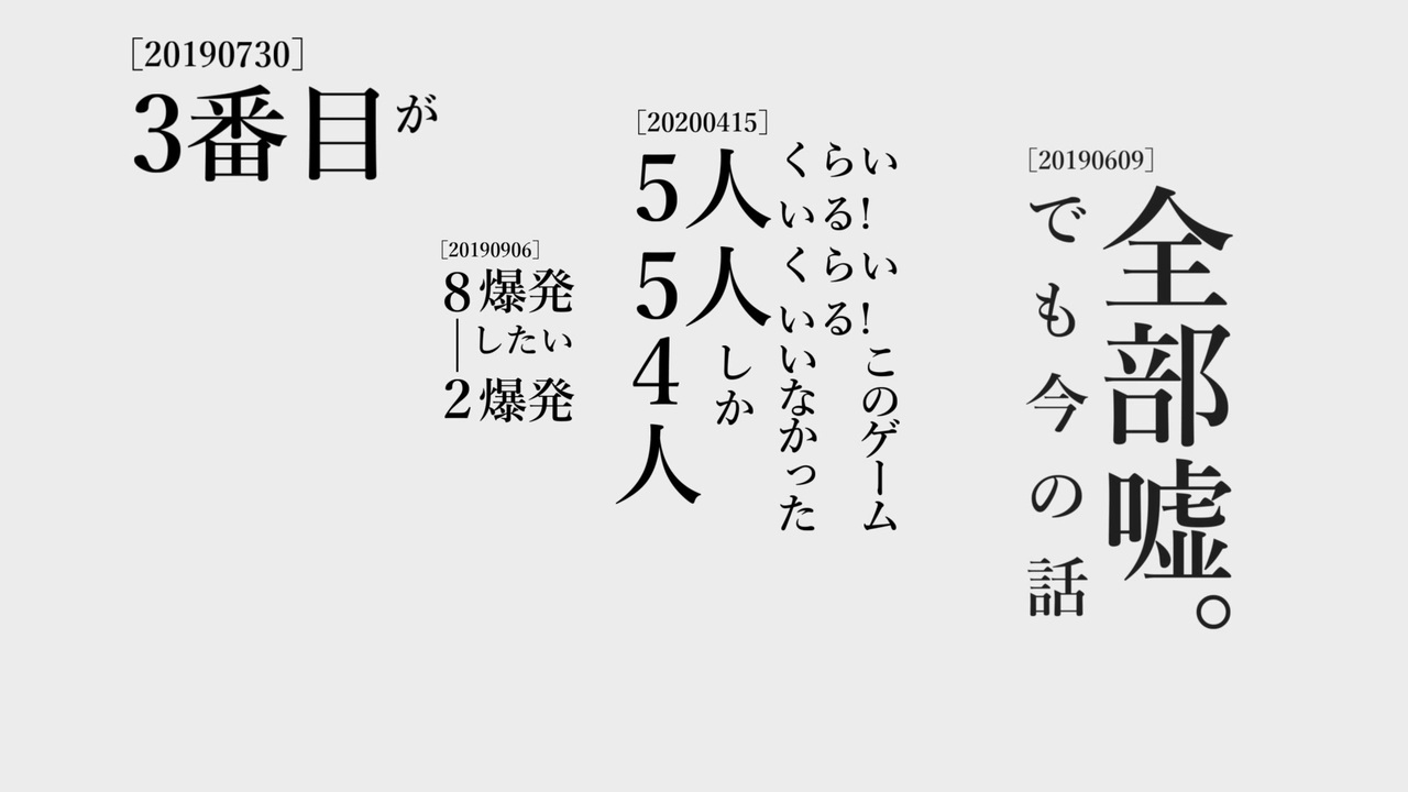 次回予告パロで気になってAngel Beats!のアニメ観ました<br>めちゃめちゃ面白かったので皆さんもぜひ観てみてください!<br>まあ僕は観たことないですけど<br><br>エクス・アルビオ<br><a href="https://www.youtube.com/channel/UCIytNcoz4pWzXfLda0DoULQ" target="_blank" rel="noopener nofollow">https://www.youtube.com/channel/UCIytNcoz4pWzXfLda0DoULQ</a><br><br>本編<br>「まあ魔王倒してないですけど」:<a href="https://youtu.be/wU0oFPMhTn8?t=680" target="_blank" rel="noopener nofollow">https://youtu.be/wU0oFPMhTn8?t=680</a><br>「だからみんなにも頑張って欲しい」:<a href="https://youtu.be/YL_-pah8TK4?t=964" target="_blank" rel="noopener nofollow">https://youtu.be/YL_-pah8TK4?t=964</a><br>「おすすめして欲しいなぁ」:<a href="https://youtu.be/3tIJHxMJvT0?t=1982" target="_blank" rel="noopener nofollow">https://youtu.be/3tIJHxMJvT0?t=1982</a><br>「8-2」:<a href="https://youtu.be/XBF4y_uLmAk?t=1052" target="_blank" rel="noopener nofollow">https://youtu.be/XBF4y_uLmAk?t=1052</a><br>「5人くらいいる!」:<a href="https://youtu.be/YL_-pah8TK4?t=450" target="_blank" rel="noopener nofollow">https://youtu.be/YL_-pah8TK4?t=450</a><br>「でも今の話全部嘘」:<a href="https://youtu.be/mFj9tjNRJEI?t=919" target="_blank" rel="noopener nofollow">https://youtu.be/mFj9tjNRJEI?t=919</a><br>「3番目がきゅうりだね」:<a href="https://youtu.be/WNaq7c68lVk?t=2086" target="_blank" rel="noopener nofollow">https://youtu.be/WNaq7c68lVk?t=2086</a><br>「そんな人生送らせないけども」:<a href="https://youtu.be/9b44CBKUNMU?t=538" target="_blank" rel="noopener nofollow">https://youtu.be/9b44CBKUNMU?t=538</a><br>「この試合もう諦めます」:<a href="https://youtu.be/u7ga-kjQhy8?t=2400" target="_blank" rel="noopener nofollow">https://youtu.be/u7ga-kjQhy8?t=2400</a><br><br>YouTube版<br><a href="https://youtu.be/doj4ch9KRd0" target="_blank" rel="noopener nofollow">https://youtu.be/doj4ch9KRd0</a>