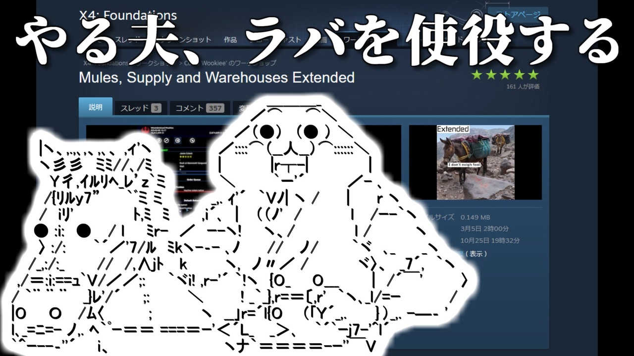 第二十話 やる夫、ラバを使役する<br>交易改善MOD「Mules, Supply and Warehouses Extended」についての解説<br>動画内で紹介した日本語版生産品チェーンガイドはこちら→<a href="https://twitter.com/proffesor2sk/status/1245211201262325760" target="_blank" rel="noopener nofollow">https://twitter.com/proffesor2sk/status/1245211201262325760</a><br>Ver3.30・DLC「Split Vendetta」導入<br><br>使わせていただいた素材サイト<br>効果音:「効果音ラボ」「効果音辞典」「OtoLogic」「Dova-Syndrome」<br>フォント:「M+」「装甲明朝」「しねきゃぷしょん」「たぬき油性マジック」「英雄行書」「ヘタレ字」「吐き溜」<br /><br><span style="color: #cc0000;">Youtubeチャンネル:<a href="https://www.youtube.com/channel/UCIgzloQ_KfcUN_AcvlxtDdg" target="_blank" rel="noopener nofollow">https://www.youtube.com/channel/UCIgzloQ_KfcUN_AcvlxtDdg</a></span><br><span style="color: #0000ff;">Twitter:<a href="https://twitter.com/proffesor2sk" target="_blank" rel="noopener nofollow">https://twitter.com/proffesor2sk</a></span><br>※その他のプレイ講座はこちら:<a href="https://www.nicovideo.jp/mylist/34307950" target="_blank" rel="noopener">mylist/34307950</a>