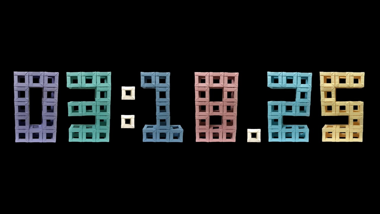 10分間のストップウォッチ動画を、折り紙を用いて作りました<br>この動画は制作の都合上、24FPSで生成されています<br>1秒間に24コマしか描写されていない為、正確性には欠けます<br>実際のストップウォッチとして使用する場合は、これを理解の上でお願いします<br><br>0~9、ドット、コロンを含め、合計1308枚を使用しています<br>----------------------------------------<br>YouTube <a href="https://youtu.be/snXMvOOpucY" target="_blank" rel="noopener nofollow">https://youtu.be/snXMvOOpucY</a><br>----------------------------------------<br>ユニット名:ぷよから式A<br>創作者:puyocolor/色水風介<br><br>[Twitter] <a href="https://twitter.com/puyocolor" target="_blank" rel="noopener nofollow">https://twitter.com/puyocolor</a><br>[Instagram] <a href="https://www.instagram.com/puyocolor/" target="_blank" rel="noopener nofollow">https://www.instagram.com/puyocolor/</a><br>[HP] <a href="http://puyocolor.jimdo.com/" target="_blank" rel="noopener nofollow">http://puyocolor.jimdo.com/</a><br><br>※転載厳禁 Reprint is prohibited.<br>----------------------------------------<br>【書籍情報】<br>「写真解説でわかるユニット折り紙」著・色水風介<br>ブティック社より、全国の書店・ネット通販で発売中<br>[Amazon] <a href="https://www.amazon.co.jp/dp/4834748995/ref=cm_sw_r_tw_dp_U_x_McPMEb335NJB2" target="_blank" rel="noopener nofollow">https://www.amazon.co.jp/dp/4834748995/ref=cm_sw_r_tw_dp_U_x_McPMEb335NJB2</a><br>[Rakuten] <a href="https://books.rakuten.co.jp/rb/16068079/" target="_blank" rel="noopener nofollow">https://books.rakuten.co.jp/rb/16068079/</a>
