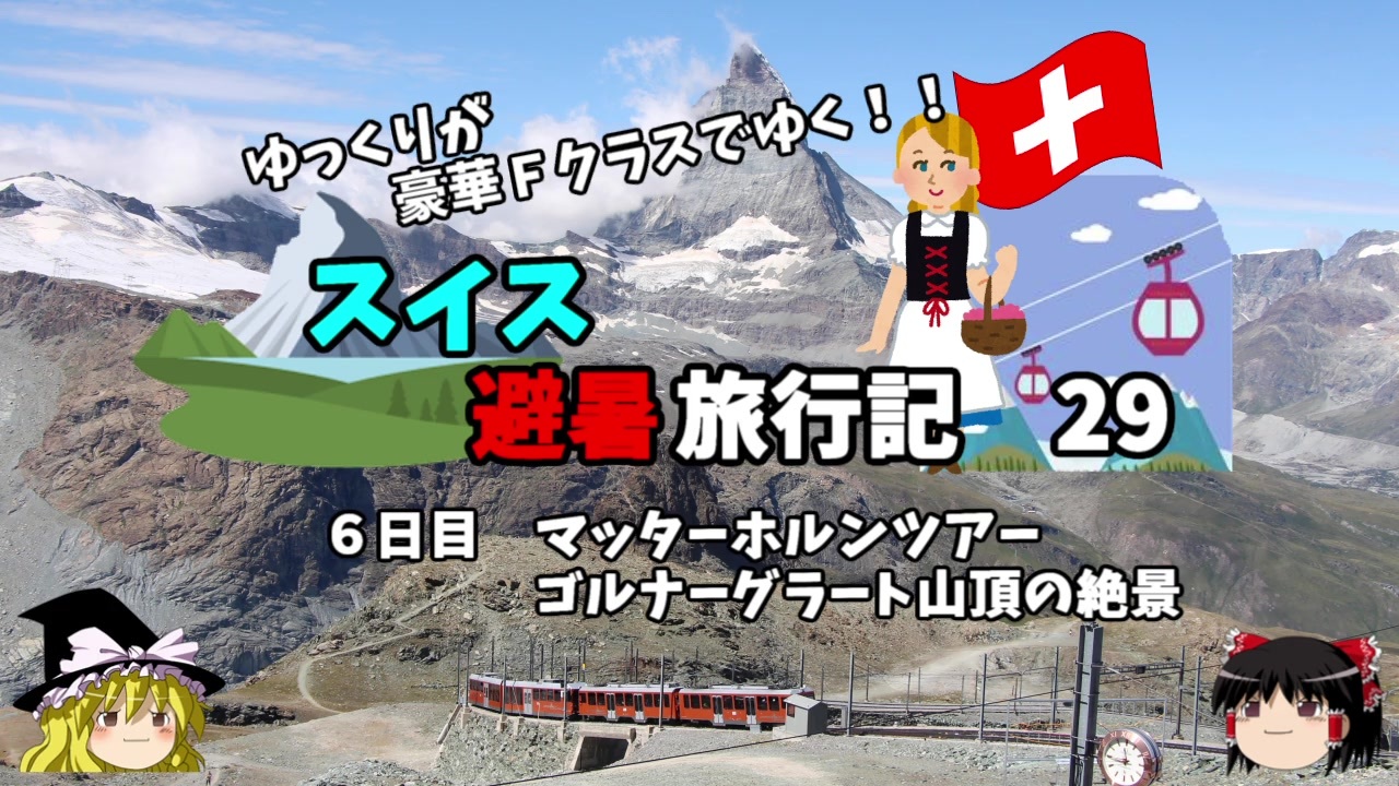 <span style="color: #ff0000; font-size: medium;"><u>※Youtubeで1話分、先行配信中 </u></span><br><span style="color: #0000ff; font-size: medium;"> <a href="http://www.youtube.com/c/なめこのぼっち旅" target="_blank" rel="noopener nofollow">http://www.youtube.com/c/なめこのぼっち旅</a></span><br><br><br>本日は観光最終日、マッターホルンに登ります!<br><br><span style="color: #ff0000;">コミュニティー→co2910020</span><br><br>twitter→<a href="https://twitter.com/ryontan" target="_blank" rel="noopener nofollow">https://twitter.com/ryontan</a><br><br><a href="https://www.nicovideo.jp/watch/sm37788296" class="watch">sm37788296</a>← 前回 <span style="color: #ff0000;">次回 30話 →</span><a href="https://www.nicovideo.jp/watch/sm37837724" class="watch">sm37837724</a><br><br>解説・雑談系→<a href="https://www.nicovideo.jp/mylist/63171869" target="_blank" rel="noopener">mylist/63171869</a><br>今作 スイス旅行記<span style="color: #000000; font-size: 14px;">→mylist/</span>68347869<br><span style="color: #000000; font-size: 14px;">前作 </span>スペイン周遊記→<a href="https://www.nicovideo.jp/mylist/64537827" target="_blank" rel="noopener">mylist/64537827</a><br>韓国トルコ旅行記→<a href="https://www.nicovideo.jp/mylist/63654428" target="_blank" rel="noopener">mylist/63654428</a><br>車中泊旅行記→<a href="https://www.nicovideo.jp/mylist/54706524" target="_blank" rel="noopener">mylist/54706524</a><br>久米島(沖縄)旅行記→<a href="https://www.nicovideo.jp/mylist/63059251" target="_blank" rel="noopener">mylist/63059251</a><br>イギリスタイ旅行記→<a href="https://www.nicovideo.jp/mylist/60044833" target="_blank" rel="noopener">mylist/60044833</a><br>クルーズ旅行記→<a href="https://www.nicovideo.jp/mylist/57397685" target="_blank" rel="noopener">mylist/57397685</a><br>ドイツ周遊記→<a href="https://www.nicovideo.jp/mylist/54938346" target="_blank" rel="noopener">mylist/54938346</a><br>北海道旅行記→<a href="https://www.nicovideo.jp/mylist/52618057" target="_blank" rel="noopener">mylist/52618057</a><br>アメリカ横断記→<a href="https://www.nicovideo.jp/mylist/48621785" target="_blank" rel="noopener">mylist/48621785</a><br>イタリア周遊記→<a href="https://www.nicovideo.jp/mylist/45763559" target="_blank" rel="noopener">mylist/45763559</a><br>NY旅行記→<a href="https://www.nicovideo.jp/mylist/44343854" target="_blank" rel="noopener">mylist/44343854</a>
