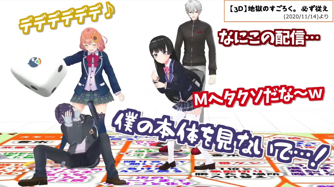 ブリッジもうまい<br>・本間ひまわり<br><a href="https://www.youtube.com/channel/UC0g1AE0DOjBYnLhkgoRWN1w?sub_confirmation=1" target="_blank" rel="noopener nofollow">https://www.youtube.com/channel/UC0g1AE0DOjBYnLhkgoRWN1w?sub_confirmation=1</a><br>・月ノ美兎<br><a href="https://www.youtube.com/channel/UCD-miitqNY3nyukJ4Fnf4_A?sub_confirmation=1" target="_blank" rel="noopener nofollow">https://www.youtube.com/channel/UCD-miitqNY3nyukJ4Fnf4_A?sub_confirmation=1</a><br>・葛葉<br><a href="https://www.youtube.com/channel/UCSFCh5NL4qXrAy9u-u2lX3g?sub_confirmation=1" target="_blank" rel="noopener nofollow">https://www.youtube.com/channel/UCSFCh5NL4qXrAy9u-u2lX3g?sub_confirmation=1</a><br>・剣持刀也<br><a href="https://www.youtube.com/channel/UCv1fFr156jc65EMiLbaLImw?sub_confirmation=1" target="_blank" rel="noopener nofollow">https://www.youtube.com/channel/UCv1fFr156jc65EMiLbaLImw?sub_confirmation=1</a><br><br>・元動画<br>【3D】地獄のすごろく。 必ず従え(2020/11/14)<br><a href="https://www.youtube.com/watch?v=NMgYGxF5fC0" target="_blank" rel="noopener nofollow">https://www.youtube.com/watch?v=NMgYGxF5fC0</a><br>▼該当箇所(27:50~)<br><a href="https://www.youtube.com/watch?v=NMgYGxF5fC0&feature=youtu.be&t=1670" target="_blank" rel="noopener nofollow">https://www.youtube.com/watch?v=NMgYGxF5fC0&feature=youtu.be&t=1670</a>