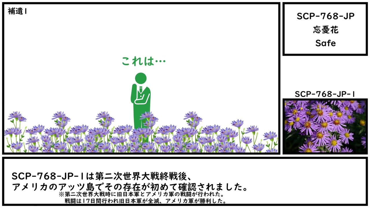 <span style="color: #9900ff;">「君を忘れない」</span><span style="color: #4a86e8;">「私を忘れないで」</span><br><br><span style="color: rgba(0, 0, 0, 0.87); font-size: 15px;">本家記事 </span><a href="http://scp-jp.wikidot.com/scp-768-jp" target="_blank" rel="noopener nofollow">http://scp-jp.wikidot.com/scp-768-jp</a><br><span style="color: rgba(0, 0, 0, 0.87); font-size: 15px;">作者 </span>hyoroika09<br><span style="color: rgba(0, 0, 0, 0.87); font-size: 15px;">SCP財団 <a href="http://scp-jp.wikidot.com" target="_blank" rel="noopener nofollow">http://scp-jp.wikidot.com</a></span><br><span style="color: #000000; font-size: 14px;">過去の動画はこちら </span><span style="color: #006699; font-size: 14px;"><a href="https://www.nicovideo.jp/mylist/67620202" target="_blank" rel="noopener">mylist/67620202</a></span><br><span style="color: rgba(0, 0, 0, 0.87); font-size: 15px;">CC-BY-SA 3.0</span>