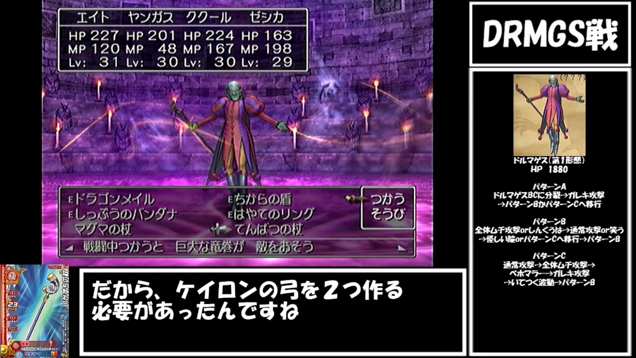 長時間戦闘で話すことが思いつかないので初投稿です。<br><br>闇の遺跡~DRMGS戦まで<br><br><a href="https://www.nicovideo.jp/watch/sm37829686" class="watch">sm37829686</a>←前 <a href="https://www.nicovideo.jp/mylist/69843141" target="_blank" rel="noopener">mylist/69843141</a> 次→<a href="https://www.nicovideo.jp/watch/sm37853012" class="watch">sm37853012</a><br><br>生放送用を行うコミュ co4518186<br>Twitter:<a href="https://twitter.com/imomushidq8" target="_blank" rel="noopener nofollow">https://twitter.com/imomushidq8</a><br><br>【ルール】<br>①道具の使用のみで戦闘を行う。(ぼうぎょ・ためるは可能)<br>②移動中の呪文・特技の使用禁止。(すべて道具で行う)<br>③倒せないモンスターは、多少妥協する。<br>④なるべく失踪しない。<br><br>この動画で利用している株式会社スクウェア・エニックスを代表とする共同著作者が権利を所有する著作物及びスギヤマ工房有限会社が権利を所有する楽曲の転載・配布は禁止いたします。<br>© 2004 ARMOR PROJECT/BIRD STUDIO/LEVEL-5/SQUARE ENIX All Rights Reserved.<br>© SUGIYAMA KOBO<br><br>