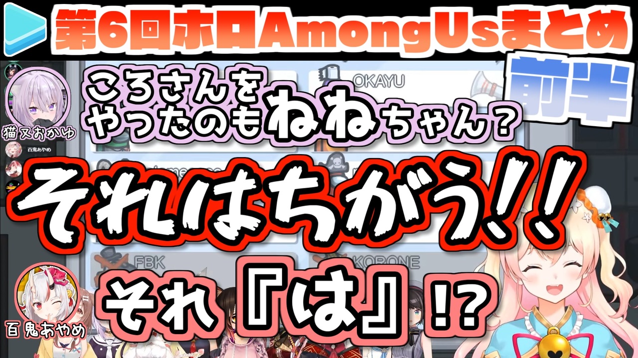 ロボ子 <a href="https://youtu.be/Rt07jCZez1I" target="_blank" rel="noopener nofollow">https://youtu.be/Rt07jCZez1I</a><br>フブキ <a href="https://youtu.be/PUnMEFLEvt0" target="_blank" rel="noopener nofollow">https://youtu.be/PUnMEFLEvt0</a><br>あやめ <a href="https://youtu.be/YvHGsgjbLDE" target="_blank" rel="noopener nofollow">https://youtu.be/YvHGsgjbLDE</a><br>スバル <a href="https://youtu.be/xVLPBn6NBPI" target="_blank" rel="noopener nofollow">https://youtu.be/xVLPBn6NBPI</a><br>ミオ <a href="https://youtu.be/D7VCcracZpI" target="_blank" rel="noopener nofollow">https://youtu.be/D7VCcracZpI</a><br>おかゆ <a href="https://youtu.be/pMhnCAO6Wzg" target="_blank" rel="noopener nofollow">https://youtu.be/pMhnCAO6Wzg</a><br>ころね <a href="https://youtu.be/EweiN4UxySo" target="_blank" rel="noopener nofollow">https://youtu.be/EweiN4UxySo</a><br>マリン <a href="https://youtu.be/WVBpr8DE7sA" target="_blank" rel="noopener nofollow">https://youtu.be/WVBpr8DE7sA</a><br>わため <a href="https://youtu.be/MxKRncIdoLg" target="_blank" rel="noopener nofollow">https://youtu.be/MxKRncIdoLg</a><br>ねね <a href="https://youtu.be/q5gTt9io9Ho" target="_blank" rel="noopener nofollow">https://youtu.be/q5gTt9io9Ho</a><br><br>Roboco Ch. - ロボ子 <a href="https://t.co/9Tw5lajPeC" target="_blank" rel="noopener nofollow">https://t.co/9Tw5lajPeC</a><br>フブキCh。白上フブキ <a href="https://t.co/R9TNhC7sPO" target="_blank" rel="noopener nofollow">https://t.co/R9TNhC7sPO</a><br>Ayame Ch. 百鬼あやめ <a href="https://t.co/DR2yLYpy64" target="_blank" rel="noopener nofollow">https://t.co/DR2yLYpy64</a><br>Subaru Ch. 大空スバル <a href="https://t.co/1XIcn8rNbM" target="_blank" rel="noopener nofollow">https://t.co/1XIcn8rNbM</a><br>Mio Channel 大神ミオ <a href="https://t.co/srC9Gb4Mxi" target="_blank" rel="noopener nofollow">https://t.co/srC9Gb4Mxi</a><br>Okayu Ch. 猫又おかゆ <a href="https://t.co/JoeI3u9YjS" target="_blank" rel="noopener nofollow">https://t.co/JoeI3u9YjS</a><br>Korone Ch. 戌神ころね <a href="https://t.co/qeTXwRU2F1" target="_blank" rel="noopener nofollow">https://t.co/qeTXwRU2F1</a><br>Marine Ch. 宝鐘マリン <a href="https://t.co/8WZjV1i70E" target="_blank" rel="noopener nofollow">https://t.co/8WZjV1i70E</a><br>Watame Ch. 角巻わため <a href="https://t.co/gE06SdvpNX" target="_blank" rel="noopener nofollow">https://t.co/gE06SdvpNX</a><br>Nene Ch.桃鈴ねね <a href="https://t.co/ZKkIB3TE9S" target="_blank" rel="noopener nofollow">https://t.co/ZKkIB3TE9S</a><br>