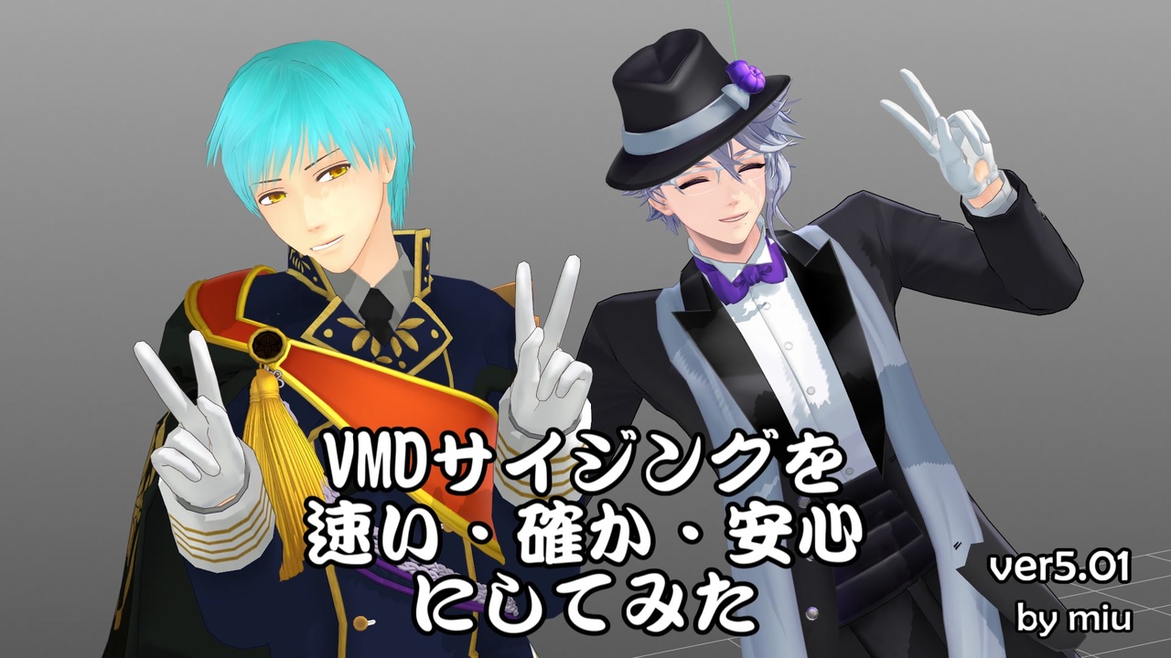 VMD(MMDモーションデータ)を、指定されたモデルに適切な頭身で再生成するツールです。<br>※おまけ機能の一部はモーションサポーターに移植してます。<br><br>※セキュリティソフトで誤検知される場合があります。すみませんが下記手順をご参照下さい<br>サイジングWiki短縮リンク:<a href="https://bit.ly/33cJAyJ" target="_blank" rel="noopener nofollow">https://bit.ly/33cJAyJ</a><br><br>* * * <br><strong>■配布元URL</strong><br>64bit<br><a href="https://bowlroll.net/file/197410" target="_blank" rel="noopener nofollow">https://bowlroll.net/file/197410</a><br> 2021/06/30 ver5.01.03 細々とした機能修正<br><br><strong>■Wiki(機能概要・使い方等。v5対応アップデート中)</strong><br><a href="https://github.com/miu200521358/vmd_sizing/wiki/" target="_blank" rel="noopener nofollow">https://github.com/miu200521358/vmd_sizing/wiki/</a><br> ・解凍文字化け、ウィルス誤検知等の対応も記載してます<br><br><strong>■ver5.00配布動画(基本的な使い方)</strong><br><a href="https://www.nicovideo.jp/watch/sm37143852" class="watch">sm37143852</a><br><br><strong>■コンテンツツリー登録用静画</strong><br><a href="https://seiga.nicovideo.jp/seiga/im9755721" target="_blank" rel="noopener">im9755721</a><br><br>* * * <br><strong>【変更点】</strong><br>速度UP <a href="#" class="seekTime" data-seekTime="00:38" onclick="seekNicoPlayer('#00:38'); return false;">#00:38</a> ~<br>捩り分散精度・速度UP <a href="#" class="seekTime" data-seekTime="01:15" onclick="seekNicoPlayer('#01:15'); return false;">#01:15</a> ~<br>カメラ精度UP <a href="#" class="seekTime" data-seekTime="01:42" onclick="seekNicoPlayer('#01:42'); return false;">#01:42</a> ~<br>進捗ダイアログ追加 <a href="#" class="seekTime" data-seekTime="02:06" onclick="seekNicoPlayer('#02:06'); return false;">#02:06</a> ~<br>一括サイジング <a href="#" class="seekTime" data-seekTime="02:27" onclick="seekNicoPlayer('#02:27'); return false;">#02:27</a> ~<br><br>* * * <br><strong>【FAQ】</strong><br><br>Q. ファイル履歴の移行は出来ますか?<br>A. exeと同じフォルダに出来てる、history.jsonを任意のexeと同じフォルダ内に<br> 置いていただければ引き続きお使いいただけます。<br><br><br>* * * <br><br>MMD自動トレース挑戦の記録: <a href="https://www.nicovideo.jp/series/87034" target="_blank" rel="noopener">series/87034</a><br>MME・MMDツール等 : <a href="https://www.nicovideo.jp/mylist/63580881" target="_blank" rel="noopener">mylist/63580881</a><br>自作MMD作品マイリスト : <a href="https://www.nicovideo.jp/mylist/47353166" target="_blank" rel="noopener">mylist/47353166</a><br><br><br />---------------------------------<br><br>Vmd(モーション)関連ツール: <a href="https://www.nicovideo.jp/series/87033" target="_blank" rel="noopener">series/87033</a><br>Pmx(モデル)関連ツール: <a href="https://www.nicovideo.jp/series/280612" target="_blank" rel="noopener">series/280612</a><br>miuの実験室出張版アーカイブ+α: <a href="https://www.nicovideo.jp/series/332318" target="_blank" rel="noopener">series/332318</a><br>MMD自動トレース挑戦の記録: <a href="https://www.nicovideo.jp/series/87034" target="_blank" rel="noopener">series/87034</a><br>MMD配布物・Tips等: <a href="https://www.nicovideo.jp/series/244805" target="_blank" rel="noopener">series/244805</a><br>自作MMD作品マイリスト: <a href="https://www.nicovideo.jp/mylist/47353166" target="_blank" rel="noopener">mylist/47353166</a><br><br>---------------------------------<br>■ ヘルプが必要な場合<br><br>ツールの不具合報告やご相談はコミュニティからお願いします<br>それ以外からのご連絡は、お答えしかねます<br><br>---------------------------------<br>■ コミュニティのご案内<br><br><strong>MMD長屋</strong>:<a href="https://discord.gg/jDqU6qRaKj" target="_blank" rel="noopener nofollow">https://discord.gg/jDqU6qRaKj</a><br><br> カテゴリごとにオーナーがいて、希望するカテゴリに参加できる形式のちょっと変わったDiscordサーバーです<br> ニコニコミュニティなどでのコミュ限配布や交流などの使い方を想定しています<br> カテゴリ開設を申請していただくことも可能です<br><br>----------------<br><br><strong>miuの実験室</strong>:<a href="https://discord.gg/MW2Bn47aCN" target="_blank" rel="noopener nofollow">https://discord.gg/MW2Bn47aCN</a><br><br> VMDサイジングやモーションサポーターなど、自作ツールに関する諸々実験室<br> 拙作ツールに関する質問や相談を受け付けています。FAQページも用意しています。<br> また一足早くベータ版を試していただくことができます。<br> 「MMD長屋」サーバーの1カテゴリなので、サーバーに参加してから参加希望を申請してください<br><br>---------------------------------<br><br>よければコーヒーの一杯でも奢ってくださいw<br><a href="https://giftee.com/u/miu200521358" target="_blank" rel="noopener nofollow">https://giftee.com/u/miu200521358</a>
