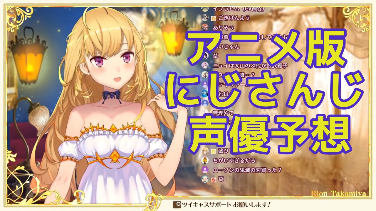 元動画 <br>【鷹宮リオン】アニメ版にじさんじの声優予想をする鷹宮リオン【にじさんじ/切り抜き】<br><a href="https://www.youtube.com/watch?v=8S5xchkWsSY" target="_blank" rel="noopener nofollow">https://www.youtube.com/watch?v=8S5xchkWsSY</a><br><br>鷹宮リオン:<a href="https://www.youtube.com/channel/UCV5ZZlLjk5MKGg3L0n0vbzw" target="_blank" rel="noopener nofollow">https://www.youtube.com/channel/UCV5ZZlLjk5MKGg3L0n0vbzw</a><br><br>マイリスト→<a href="https://www.nicovideo.jp/mylist/69964162" target="_blank" rel="noopener">mylist/69964162</a><br><br>YouTubeにも動画をアップロードしています。<br><a href="https://www.youtube.com/channel/UC1COimsKdDGGAUGEYSwYgMA?view_as=subscriber" target="_blank" rel="noopener nofollow">https://www.youtube.com/channel/UC1COimsKdDGGAUGEYSwYgMA?view_as=subscriber</a>