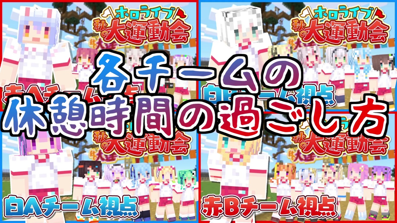 みんな個性豊か<br><br>本編こちら<br>ホロライブ秋の大運動会‼【#ホロライブ運動会 / Minecraft】<br><a href="https://youtu.be/FNMXvXf1u8M" target="_blank" rel="noopener nofollow">https://youtu.be/FNMXvXf1u8M</a><br><br>【白組Bチーム】ホロライブ秋の大運動会‼【#ホロライブ運動会 / Minecraft】<br><a href="https://youtu.be/ibwFf5W8S7Q" target="_blank" rel="noopener nofollow">https://youtu.be/ibwFf5W8S7Q</a><br><br>ホロライブ秋の大運動会!赤Bチーム視点【#ホロライブ運動会 / Minecraft】<br><a href="https://youtu.be/eBxssjg__ro" target="_blank" rel="noopener nofollow">https://youtu.be/eBxssjg__ro</a><br><br>ホロライブ秋の大運動会!白Aチーム視点【#ホロライブ運動会 / Minecraft】<br><a href="https://youtu.be/qqXNceOPq5I" target="_blank" rel="noopener nofollow">https://youtu.be/qqXNceOPq5I</a><br><br>ホロライブ秋の大運動会!赤Aチーム視点【#ホロライブ運動会 / Minecraft】<br><a href="https://youtu.be/2lmJqaIehr8" target="_blank" rel="noopener nofollow">https://youtu.be/2lmJqaIehr8</a><br><br>運営<br>さくらみこ<br>大神ミオ<br><br>赤Aチーム<br>兎田ぺこら<br>ロボ子さん<br>夜空メル<br>紫咲シオン<br>宝鐘マリン<br>獅白ぼたん<br><br>白Aチーム<br>湊あくあ<br>アキ・ローゼンタール<br>大空スバル<br>星街すいせい<br>猫又おかゆ<br>潤羽るしあ<br><br>赤Bチーム<br>赤井はあと<br>天音かなた<br>桐生ココ<br>姫森ルーナ<br>常闇トワ<br>尾丸ポルカ<br><br>白Bチーム<br>白上フブキ<br>夏色まつり<br>百鬼あやめ<br>白銀ノエル<br>角巻わため<br>雪花ラミィ<br /><br><span style="font-size: 10px;">はてな</span><br><span style="color: #006699; font-size: 10px;">YouTube:</span><span style="font-size: 10px;"><a href="https://www.youtube.com/channel/UC2T5huyurRqV6nb8S_3hmfg" target="_blank" rel="noopener nofollow">https://www.youtube.com/channel/UC2T5huyurRqV6nb8S_3hmfg</a></span><br><span style="color: #006699; font-size: 10px;">Twitter:</span><span style="font-size: 10px;"><a href="https://twitter.com/holocut" target="_blank" rel="noopener nofollow">https://twitter.com/holocut</a></span>