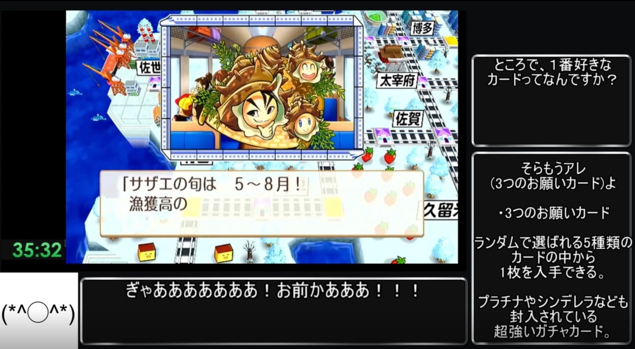 <span style="font-size: 18px;"><strong>桃鉄を流行らせるためには自分自身が巨額宣伝兄貴になればよいことに気づいたので初投稿です。</strong></span><br><br><span style="font-size: 16px;">桃太郎電鉄~昭和 平成 令和も定番!~、11/19(木)発売!!!</span><br><br>計測開始:4月のメッセージをめくった瞬間<br>計測終了:秘書の「ついに、ついに桃太郎ランドを~」のメッセージが表示された瞬間<br><br>徹夜プレイ&深夜テンション&一発通しによるガバしかありません。<br>ご視聴の際はご注意ください。<br><br>前→<a href="https://www.nicovideo.jp/watch/sm37855147" class="watch">sm37855147</a> 次→<a href="https://www.nicovideo.jp/watch/sm37865171" class="watch">sm37865171</a><br><br>RTAのPart1まとめ→<a href="https://www.nicovideo.jp/mylist/69984573" target="_blank" rel="noopener">mylist/69984573</a><br>桃鉄RTAのまとめ→<a href="https://www.nicovideo.jp/series/180857" target="_blank" rel="noopener nofollow">https://www.nicovideo.jp/series/180857</a><br><span style="font-size: 14px;">桃鉄のdiscord鯖はこちら→<a href="https://t.co/zWnQul8ry4?amp=1" target="_blank" rel="noopener nofollow">https://t.co/zWnQul8ry4?amp=1</a></span><br>コミュニティはこちら→<a href="https://com.nicovideo.jp/community/co3705247" target="_blank" rel="noopener nofollow">https://com.nicovideo.jp/community/co3705247</a><br>ツイッターはこちら→<a href="https://twitter.com/jinruinohaji" target="_blank" rel="noopener nofollow">https://twitter.com/jinruinohaji</a><br>ほしいもの→<a href="https://www.amazon.jp/hz/wishlist/ls/1STODBTN9ZOJQ?ref_=wl_share" target="_blank" rel="noopener nofollow">https://www.amazon.jp/hz/wishlist/ls/1STODBTN9ZOJQ?ref_=wl_share</a><br><br>※最初にあげた動画は11月の画面が緑一色になっていたため消しました。<br>広告して頂いたみなさま、誠に申し訳ございませんでした。<br><br><br><br>広告して頂いたみなさん、誠にありがとうございます!<br>以下敬称略です<br><br>今氷昇太、マサミツ、へーほ、oak、キキ、ジョルジュ早乙女、我流人、yamato、ライオネルぽこ山、ザナドゥ、たんぽぽ、エルにボンビーをつけるディミトリ、teru、オストワルト法、白刹(ハク)、たも、ゲスト、laughingman、ジョン・スミス、neco3、Zara、ホムスビ、浦和さとり、こくまろみるく、またきた次郎(Rancore)<br>