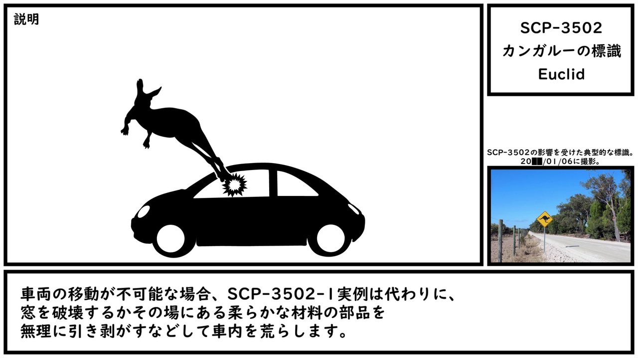 注意はしておいた。恨むなら標識をよく見なかった自分を恨め。<br><br>本家記事 <a href="http://scp-wiki.wikidot.com/scp-3502" target="_blank" rel="noopener nofollow">http://scp-wiki.wikidot.com/scp-3502</a><br>翻訳記事 <a href="http://scp-jp.wikidot.com/scp-3502" target="_blank" rel="noopener nofollow">http://scp-jp.wikidot.com/scp-3502</a><br><span style="color: rgba(0, 0, 0, 0.87); font-size: 15px;">作者 </span>TheManhattenProject(原著), Zyn(改稿)<br><span style="color: rgba(0, 0, 0, 0.87); font-size: 15px;">SCP財団 <a href="http://scp-jp.wikidot.com" target="_blank" rel="noopener nofollow">http://scp-jp.wikidot.com</a></span><br><span style="color: #000000; font-size: 14px;">過去の動画はこちら </span><span style="color: #006699; font-size: 14px;"><a href="https://www.nicovideo.jp/mylist/67620202" target="_blank" rel="noopener">mylist/67620202</a></span><br><span style="color: rgba(0, 0, 0, 0.87); font-size: 15px;">CC-BY-SA 3.0</span>