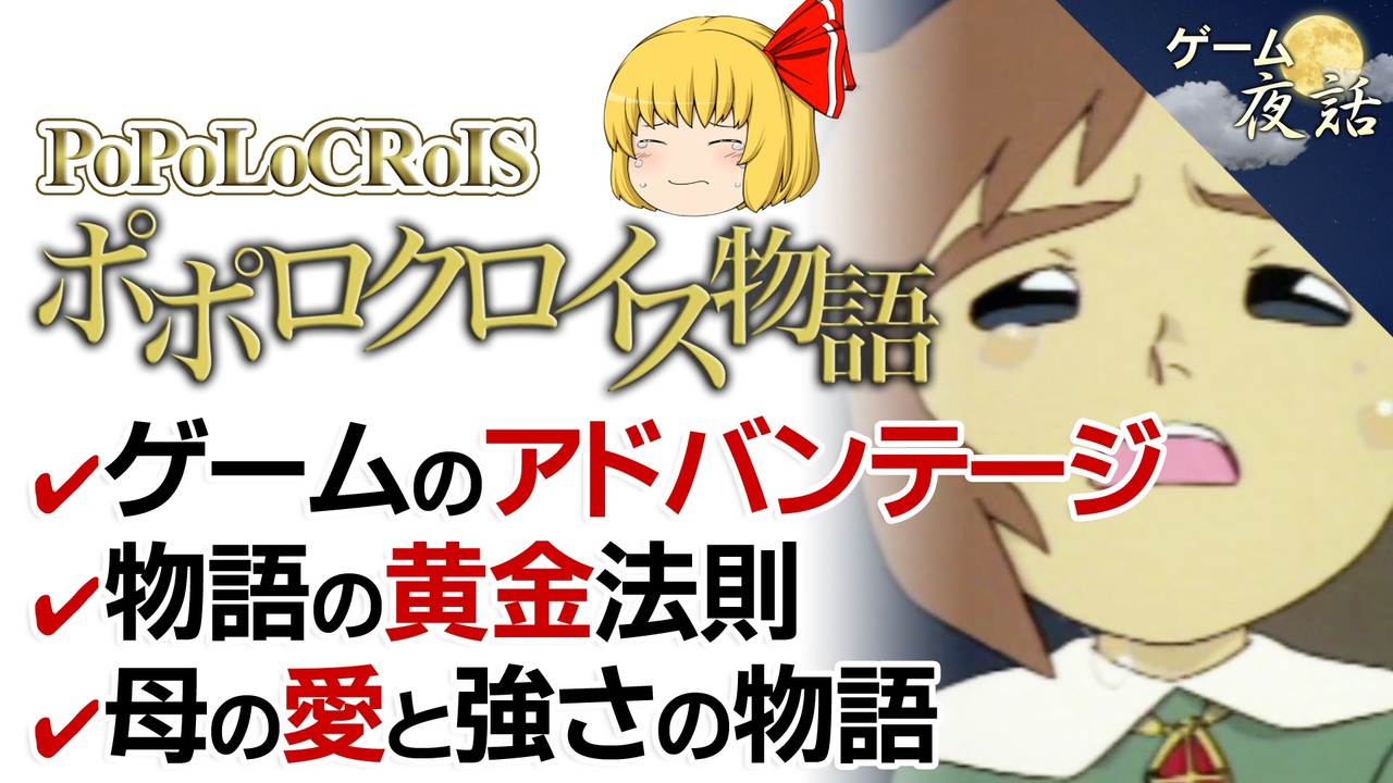 過去動画を宣伝して下さった皆さん、ありがとうございましたm(__)m<br>毎回ひとつのゲームを取り上げ、3つのテーマから解説&考察します。<br>【前編】は毎月1日・15日更新、【後編】は制作状況に応じて更新致します。<br><br><strong>第88回「ポポロクロイス物語」</strong><br>■前編:<a href="https://www.nicovideo.jp/watch/sm37824198" class="watch">sm37824198</a><br><br>■youtubeはこちら <a href="https://youtu.be/n7-Wvc6hLLQ" target="_blank" rel="noopener nofollow">https://youtu.be/n7-Wvc6hLLQ</a><br>■告知用のツイッター <a href="https://twitter.com/gameyawa" target="_blank" rel="noopener nofollow">https://twitter.com/gameyawa</a><br><br>■第87回「パラサイト・イヴ」前編:<a href="https://www.nicovideo.jp/watch/sm37757395" class="watch">sm37757395</a> 後編:<a href="https://www.nicovideo.jp/watch/sm37786077" class="watch">sm37786077</a><br>■第89回「学校であった怖い話」<br>前編:<a href="https://www.nicovideo.jp/watch/sm37901965" class="watch">sm37901965</a> 中編:<a href="https://www.nicovideo.jp/watch/sm37942820" class="watch">sm37942820</a> 後編:<a href="https://www.nicovideo.jp/watch/sm37948422" class="watch">sm37948422</a><br><br>■ゲーム夜話マイリスト <a href="https://www.nicovideo.jp/mylist/56973971" target="_blank" rel="noopener">mylist/56973971</a><br><span style="color: #000000; font-size: 13px;">■ゲーム夜話特別編マイリスト <a href="https://www.nicovideo.jp/mylist/65104419" target="_blank" rel="noopener">mylist/65104419</a><br><br>■ゲームジャンル別マイリスト</span><br>・RPG <a href="https://www.nicovideo.jp/mylist/69852172" target="_blank" rel="noopener">mylist/69852172</a><br>・アクション <a href="https://www.nicovideo.jp/mylist/69852179" target="_blank" rel="noopener">mylist/69852179</a><br>・アクションRPG <a href="https://www.nicovideo.jp/mylist/69852177" target="_blank" rel="noopener">mylist/69852177</a><br>・アドベンチャー <a href="https://www.nicovideo.jp/mylist/69852182" target="_blank" rel="noopener">mylist/69852182</a><br>・アクションアドベンチャー <a href="https://www.nicovideo.jp/mylist/69852188" target="_blank" rel="noopener">mylist/69852188</a><br>・シミュレーション <a href="https://www.nicovideo.jp/mylist/69852189" target="_blank" rel="noopener">mylist/69852189</a><br>・ホラー <a href="https://www.nicovideo.jp/mylist/69852194" target="_blank" rel="noopener">mylist/69852194</a><br>・サウンドノベル <a href="https://www.nicovideo.jp/mylist/69852197" target="_blank" rel="noopener">mylist/69852197</a>