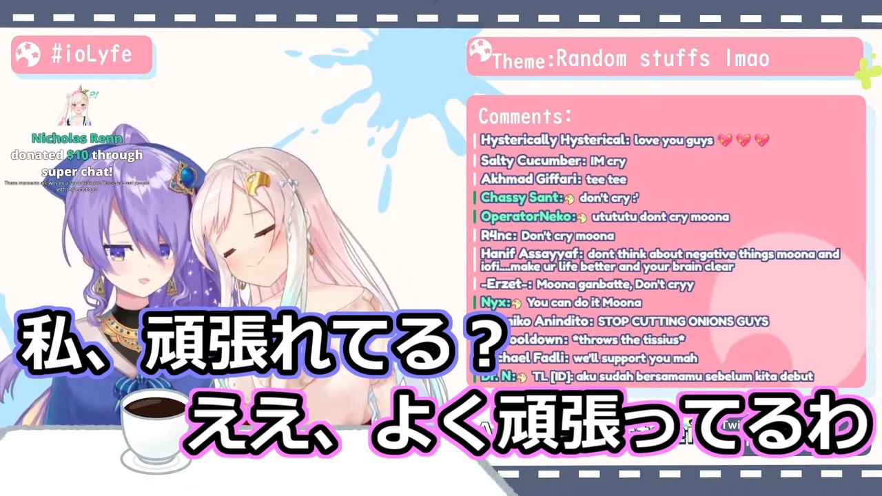 【English Free Talk】How Was Your Day? Let's Talk【hololiveID】<br><a href="https://www.youtube.com/watch?v=p4Y0wbukM80" target="_blank" rel="noopener nofollow">https://www.youtube.com/watch?v=p4Y0wbukM80</a><br><br>ガバガバ翻訳なので明らかにおかしい部分があればコメントで教えてください。<br>※YouTubeで見たい人はこちら → <a href="https://www.youtube.com/watch?v=eB41NliR6XA" target="_blank" rel="noopener nofollow">https://www.youtube.com/watch?v=eB41NliR6XA</a><br><br>@Moona Hoshinova hololive-ID<br><a href="https://www.youtube.com/channel/UCP0BspO_AMEe3aQqqpo89Dg" target="_blank" rel="noopener nofollow">https://www.youtube.com/channel/UCP0BspO_AMEe3aQqqpo89Dg</a><br>@Airani Iofifteen Channel hololive-ID<br><a href="https://www.youtube.com/channel/UCAoy6rzhSf4ydcYjJw3WoVg" target="_blank" rel="noopener nofollow">https://www.youtube.com/channel/UCAoy6rzhSf4ydcYjJw3WoVg</a><br><br>@Ayunda Risu Ch. hololive-ID<br><a href="https://www.youtube.com/channel/UCOyYb1c43VlX9rc_lT6NKQw" target="_blank" rel="noopener nofollow">https://www.youtube.com/channel/UCOyYb1c43VlX9rc_lT6NKQw</a><br>@Pekora Ch. 兎田ぺこら<br><a href="https://www.youtube.com/channel/UC1DCedRgGHBdm81E1llLhOQ" target="_blank" rel="noopener nofollow">https://www.youtube.com/channel/UC1DCedRgGHBdm81E1llLhOQ</a>