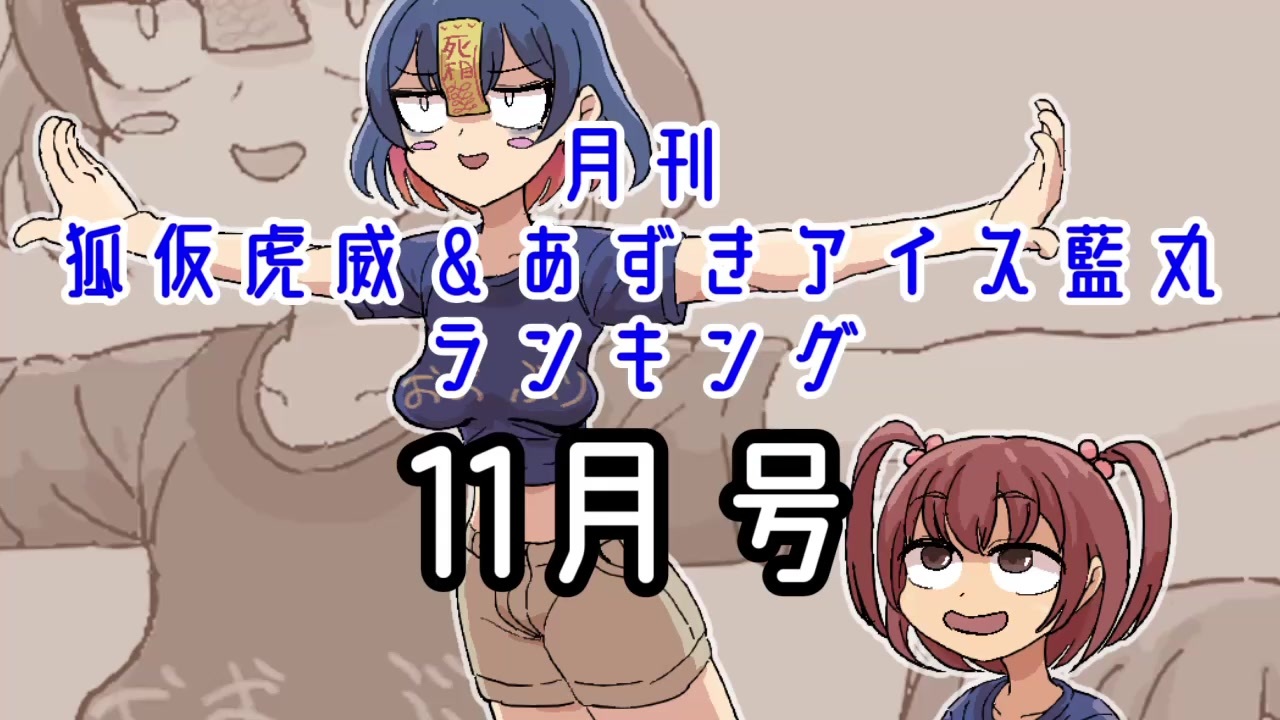 先月は29本の対象動画が投稿されました!<br>ご投稿くださった皆様本当にありがとうございます!<br>今月も皆様の動画を心よりお待ちしております<br>投稿の際は是非タグロックを!<br><br>狐仮虎威ファンチ合作開催のお知らせ <a href="https://www.nicovideo.jp/watch/sm37862969" class="watch">sm37862969</a><br>絶賛参加者募集中です!<br><br>1:<a href="https://www.nicovideo.jp/watch/sm37814289" class="watch">sm37814289</a><br>2:<a href="https://www.nicovideo.jp/watch/sm37862969" class="watch">sm37862969</a><br>3:<a href="https://www.nicovideo.jp/watch/sm37862078" class="watch">sm37862078</a><br>4:<a href="https://www.nicovideo.jp/watch/sm37852346" class="watch">sm37852346</a><br>5:<a href="https://www.nicovideo.jp/watch/sm37841201" class="watch">sm37841201</a><br>6:<a href="https://www.nicovideo.jp/watch/sm37873563" class="watch">sm37873563</a><br>7:<a href="https://www.nicovideo.jp/watch/sm37871969" class="watch">sm37871969</a><br>8:<a href="https://www.nicovideo.jp/watch/sm37853965" class="watch">sm37853965</a><br>9:<a href="https://www.nicovideo.jp/watch/sm37868025" class="watch">sm37868025</a><br>10:<a href="https://www.nicovideo.jp/watch/sm37784591" class="watch">sm37784591</a><br>11:<a href="https://www.nicovideo.jp/watch/sm37863888" class="watch">sm37863888</a><br>12:<a href="https://www.nicovideo.jp/watch/sm37859155" class="watch">sm37859155</a><br>13:<a href="https://www.nicovideo.jp/watch/sm37848409" class="watch">sm37848409</a><br>14:<a href="https://www.nicovideo.jp/watch/sm37773179" class="watch">sm37773179</a><br>15:<a href="https://www.nicovideo.jp/watch/sm37881040" class="watch">sm37881040</a><br>16:<a href="https://www.nicovideo.jp/watch/sm37773184" class="watch">sm37773184</a><br>17:<a href="https://www.nicovideo.jp/watch/sm37856819" class="watch">sm37856819</a><br>18:<a href="https://www.nicovideo.jp/watch/sm37862797" class="watch">sm37862797</a><br>19:<a href="https://www.nicovideo.jp/watch/sm37877599" class="watch">sm37877599</a><br>20:<a href="https://www.nicovideo.jp/watch/sm37856344" class="watch">sm37856344</a><br>21:<a href="https://www.nicovideo.jp/watch/sm37856352" class="watch">sm37856352</a><br>22:<a href="https://www.nicovideo.jp/watch/sm37759305" class="watch">sm37759305</a><br>23:<a href="https://www.nicovideo.jp/watch/sm37871529" class="watch">sm37871529</a><br>24:<a href="https://www.nicovideo.jp/watch/sm37889594" class="watch">sm37889594</a><br>25:<a href="https://www.nicovideo.jp/watch/sm37843170" class="watch">sm37843170</a><br>26:<a href="https://www.nicovideo.jp/watch/sm37780500" class="watch">sm37780500</a><br>27:<a href="https://www.nicovideo.jp/watch/sm37821382" class="watch">sm37821382</a><br>28:<a href="https://www.nicovideo.jp/watch/sm37849986" class="watch">sm37849986</a><br>29:<a href="https://www.nicovideo.jp/watch/sm37860304" class="watch">sm37860304</a><br>サムネイル:<a href="https://seiga.nicovideo.jp/seiga/im10645862" target="_blank" rel="noopener">im10645862</a><br><br>集計対象:2020年11月に投稿された「狐仮虎威(クッキー☆)」「あずきアイス藍丸」タグのついた動画 <br>集計方法:再生数+コメント数+(マイリスト登録数×43)の合計ポイント<br>集計日時:2020年12月1日0時頃<br>除外対象:検索妨害、配信アーカイブ(切り抜きや素材を除く)、ボイスドラマ本編及びその告知等<br>ランキング集計について個別のお問い合わせにはお答えしかねます<br><br>よろしくお願いします