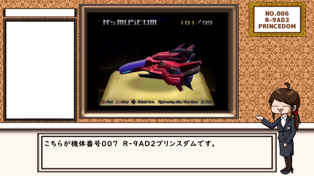 ご来館ありがとうございます。<br>こちらではR-TYPE FINALの全101機を個別に解説していきます。<br><br><span style="color: #ff0000;"><strong>※R戦闘機101機フェルト化計画とR-TYPE学会で解説した内容と重複する場合がありますが<br>予めご了承ください。</strong></span><br><br><br>No.006【<a href="https://www.nicovideo.jp/watch/sm37850055" class="watch">sm37850055</a>】 ← 【<a href="https://www.nicovideo.jp/mylist/69485195" target="_blank" rel="noopener">mylist/69485195</a>】 → No.008【<a href="https://www.nicovideo.jp/watch/sm37964838" class="watch">sm37964838</a>】<br><span style="color: #ff9900;"><strong>ぜひこちらも併せてお楽しみください</strong></span><br><strong>R戦闘機101機フェルト化計画 7機目→【<a href="https://www.nicovideo.jp/watch/sm27917319" class="watch">sm27917319</a>】</strong><br><br><br>R's museum年間パスポートはこちら→【<a href="https://seiga.nicovideo.jp/seiga/im10602469" target="_blank" rel="noopener">im10602469</a>】<br><br><span style="color: #9900ff;"><strong>グランゼーラMusic→<a href="https://granzellamusic.jp/" target="_blank" rel="noopener nofollow">https://granzellamusic.jp/</a></strong></span><br><br><span style="color: #ff9900;"><strong>ぐらんぜーら購買部→<a href="https://granzellastore.jp/ic/cat-004" target="_blank" rel="noopener nofollow">https://granzellastore.jp/ic/cat-004</a></strong></span><br><br><span style="color: #3c78d8;"><strong>R-TYPE FINAL2の最新トレーラー映像→<a href="https://www.youtube.com/channel/UC1q71eseep6XSYDpKueFpWA" target="_blank" rel="noopener nofollow">https://www.youtube.com/channel/UC1q71eseep6XSYDpKueFpWA</a></strong></span><br><br><br>R戦闘機101機フェルト化計画→【<a href="https://www.nicovideo.jp/mylist/50480079" target="_blank" rel="noopener">mylist/50480079</a>】<br>R-TYPE学会→【<a href="https://www.nicovideo.jp/mylist/62392399" target="_blank" rel="noopener">mylist/62392399</a>】<br>R-TYPEの二次創作手描きアニメ→【<a href="https://www.nicovideo.jp/mylist/59277561" target="_blank" rel="noopener">mylist/59277561</a>】<br>その他STG手芸作品→【<a href="https://www.nicovideo.jp/mylist/54154674" target="_blank" rel="noopener">mylist/54154674</a>】<br><br>BOOTH(STG漫画)→<a href="https://teamftype.booth.pm/" target="_blank" rel="noopener nofollow">https://teamftype.booth.pm/</a><br>twitter→<a href="https://twitter.com/handmadesiyouzu" target="_blank" rel="noopener nofollow">https://twitter.com/handmadesiyouzu</a><br>ブログ→<a href="http://blog.goo.ne.jp/suga1324" target="_blank" rel="noopener nofollow">http://blog.goo.ne.jp/suga1324</a>