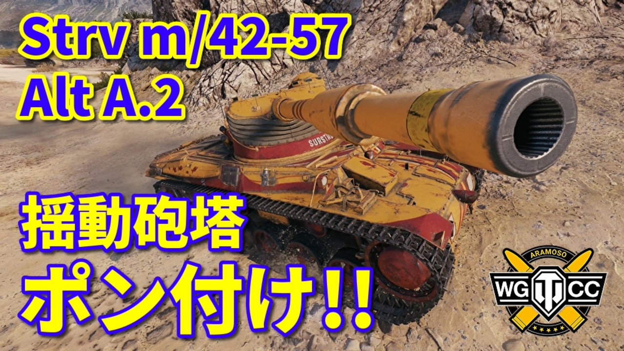 アジアサーバーでWoTを始めよう!<br>好評につき、新規プレイヤー向け招待ミッションが復活!<br>新しくWoTをプレイする方向けに「ミッション付き招待コード」を配布中です。<br>新規アカウントを作る際、コード入力画面に「ARAMOSO」と入れるだけでOK!<br>やったぜ。様々なチャレンジミッションをクリアして報酬をGETだ!<br><br>【コード内容】<br>・500ゴールド<br>・WoTプレミアムアカウント3日分<br>・100Kクレジット<br>・ポーランドプレミアム車両 TKS zn/.k.m 20mm(100%乗員付き)<br>・繰り返し可能なデイリーミッション(EXP、クレジットブースター)<br><br>~~~~~ここから動画説明~~~~~<br>M4A1 (Fl10)といい、AMX-13砲塔は他国戦車の車体と相性いいんすかね…。<br><br>■プレイヤー:sereca[AZM]<br>■搭乗戦車:Strv m/42-57 Alt A.2(スウェーデンのTier6中戦車)<br>■拡張パーツ:改良型旋回機構、改良型換気装置、双眼鏡<br><br>■YouTube版(高画質)はコチラから<br>URL→<a href="https://youtu.be/60za_CbmH-U" target="_blank" rel="noopener nofollow">https://youtu.be/60za_CbmH-U</a><br><br>前→<a href="https://www.nicovideo.jp/watch/sm37908101" class="watch">sm37908101</a> 次→<a href="https://www.nicovideo.jp/watch/sm37921916" class="watch">sm37921916</a><br>WoT用マイリスト【<a href="https://www.nicovideo.jp/mylist/64661257" target="_blank" rel="noopener">mylist/64661257</a>】<br>WoTクランウォーズ動画【<a href="https://www.nicovideo.jp/mylist/55801134" target="_blank" rel="noopener">mylist/55801134</a>】<br>ツイッター【mosomondo】<br><br>[この動画はウォーゲーミングジャパン株式会社が権利を所有する著作物を利用しております。c Wargaming.net]<br>