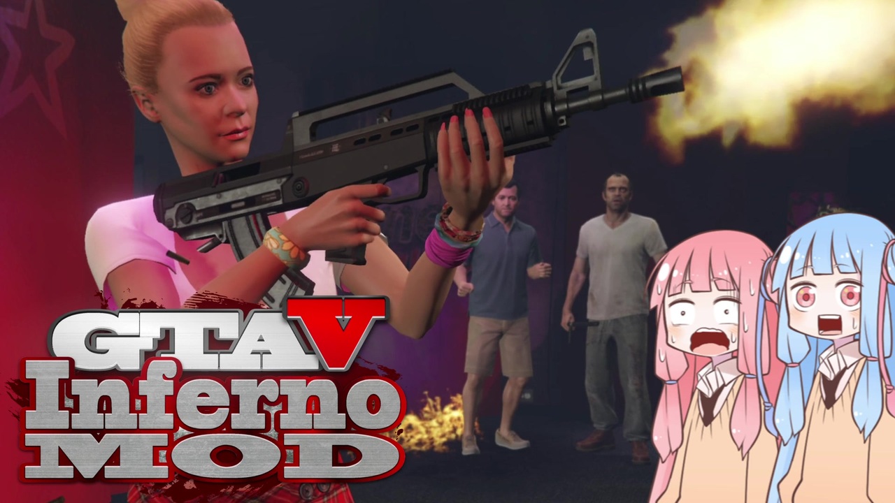 どうも、JACK(将軍)です。<br>今回も、PC版「Grand Theft Auto V」の<strong>インフェルノMOD</strong>で遊んでいきます。<br>久しぶりに、マイケル(とトレバー)のミッション。<br>10年振りの再会を果たしてしまったマイケルとトレバー。<br>過去の話をする前に、娘のトレイシーがオーディション番組で恥を晒すのを阻止しに行きます。<br>こういう時のトレバーは、なんか好きですね。<br><br>詰め込みたいシーンが多くて、動画が長くなっちゃいました。<br>でも、自分でも声出して笑うくらい楽しかったので、仕方ないね。<br><br>たくさんコメントしてもらって嬉しい!アリガトネ!<br>広告もいつもありがとうございます!<br><br>エンコード中で載せられませんでしたが、satoriさんにも広告して頂きました。<br>ありがとうございます!<br><br>動画内で使用してる機能(追加したり減らしたりするかも)<br>・カオスモード(市民が暴徒化)<br>・市民暴走運転(そのまんま)<br>・市民ニトロ(市民の車がニトロで急加速)<br>・空挺市民兵召喚(市民がパラシュート降下してくる)<br>・市民車両強盗(そのまんま)←たまにエラーで発動しない<br>・その他、自動で発動したり任意で使える便利(?)機能<br><br>MOD製作者のとりすーぷ様→<a href="https://www.nicovideo.jp/user/15846296" target="_blank" rel="noopener">user/15846296</a><br><br><span style="color: #ff0000; font-size: 24px;">トレイシー、見事な射撃フォームですね・・・。</span><br><br>可愛い姉妹の立ち絵(<a href="https://seiga.nicovideo.jp/seiga/im5274301" target="_blank" rel="noopener">im5274301</a>):新島秋一様<br><br> <a href="https://www.nicovideo.jp/watch/sm37894516" class="watch">sm37894516</a>←前 次→<a href="https://www.nicovideo.jp/watch/sm37983033" class="watch">sm37983033</a><br><br>その他のpart1→<a href="https://www.nicovideo.jp/mylist/44911807" target="_blank" rel="noopener">mylist/44911807</a><br>時々生放送してたり→co1632431<br>twitter→<a href="https://twitter.com/jackshougun" target="_blank" rel="noopener nofollow">https://twitter.com/jackshougun</a><br>