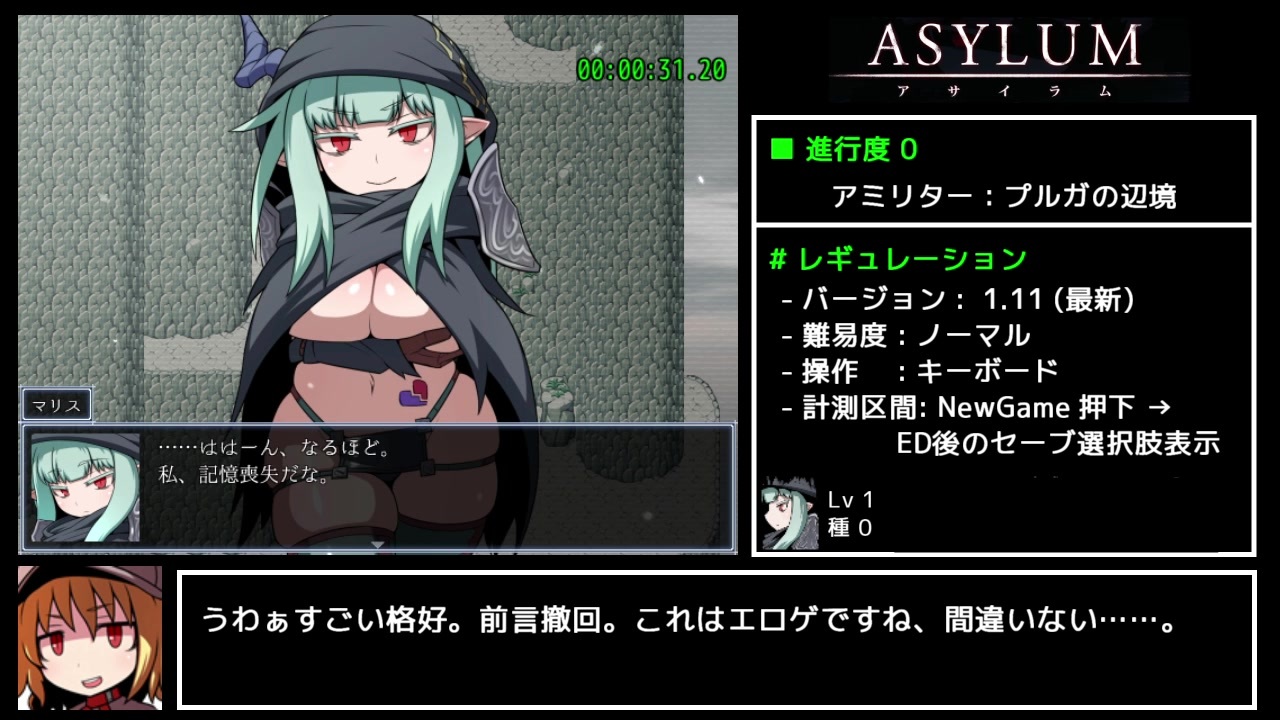 <strong>※本編のネタバレを含みます※</strong><br><br>初追走です。先駆者様とはゲーム難易度だけ異なります。<br>動画も増えてきたし、そろそろこのゲーム専用のタグ作ってもええやろ!<br><br>Part2→<a href="https://www.nicovideo.jp/watch/sm37987879" class="watch">sm37987879</a><br><a href="https://www.nicovideo.jp/mylist/70091078" target="_blank" rel="noopener">mylist/70091078</a><br><br>無編集: <a href="https://youtu.be/PxwQMrkLS8w" target="_blank" rel="noopener nofollow">https://youtu.be/PxwQMrkLS8w</a><br><br><strong>ASYLUM / アサイラム</strong><br>ttps://www.dlsite.com/maniax/work/=/product_id/RJ289299.html<br>これは買いだね<br><br>梅武兄貴、マーモ兄貴、SEQUEL kludge兄貴、文学少年兄貴、<br>desi兄貴、HIDE兄貴、ふぉる兄貴、篝火草@怜兄貴、ヒュウ兄貴、<br>CV兄貴、内藤春人兄貴、nx兄貴、小食なるエラチア兄貴、蛸犬兄貴<br>広告ありがとナス!